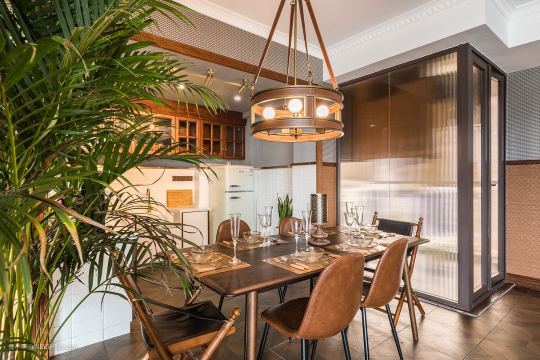 亮点介绍:餐厅旁的胡桃木百叶,为了迎接阳台进入到家里而准备的。拒绝阳光我一直以来就觉得很可惜,充分利用一进门的餐厅玻璃墙即是背景造型,又保留采光的优点