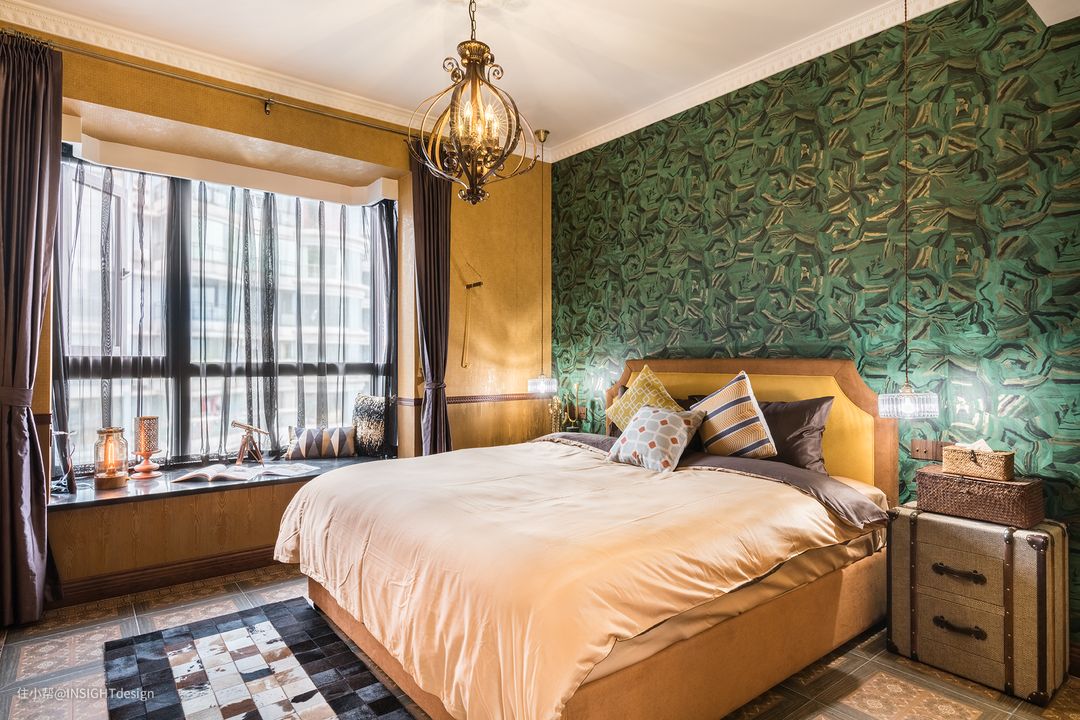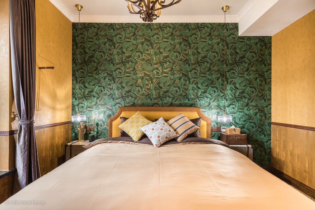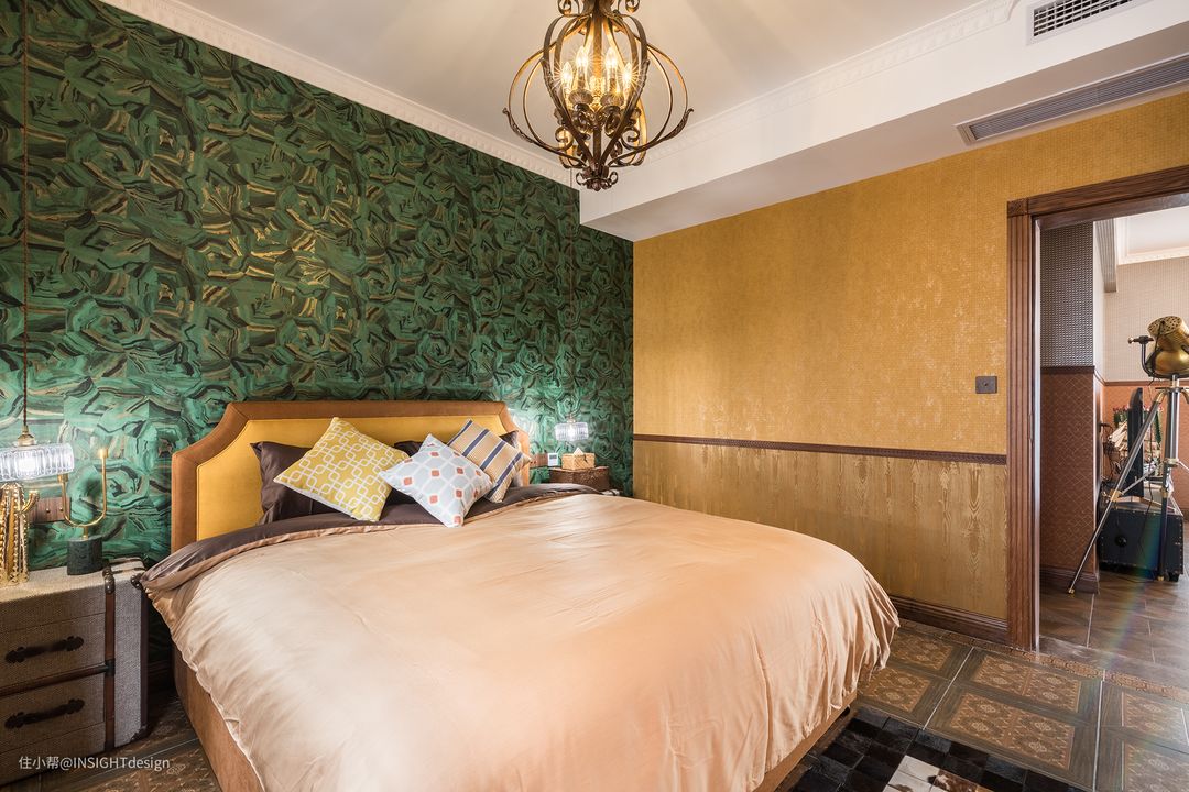 用到这个颜色搭配的时候,设计师婧哥是被电影【布达佩斯大饭店】里的火车内饰以及一些房间色彩洗了脑,因此找了点喜欢的元素搭配,那一整面的绿色,是在选材时发现的,元素有点像玛瑙花纹的,直接达到一个让人诧异的视觉,为了搭配效果,选了黄色搭配视觉冲击,其实怎么选择都不重要,通常被广大群众看不懂的,我们都可以用艺术来形容🙋🏼♀️ 主色;【深褐色】 提亮:【绿色+姜黄色】