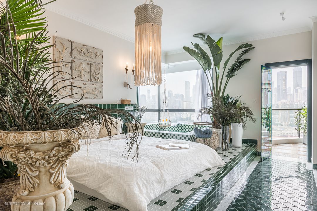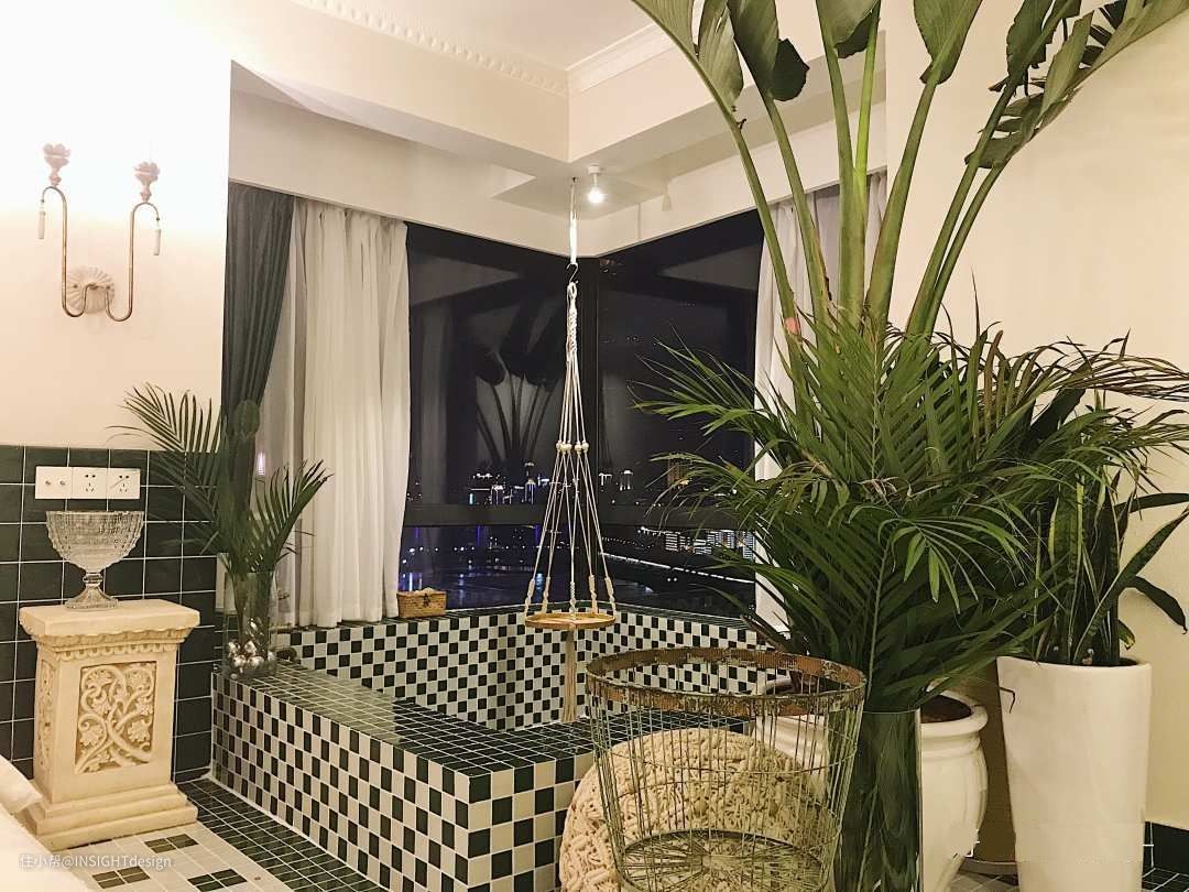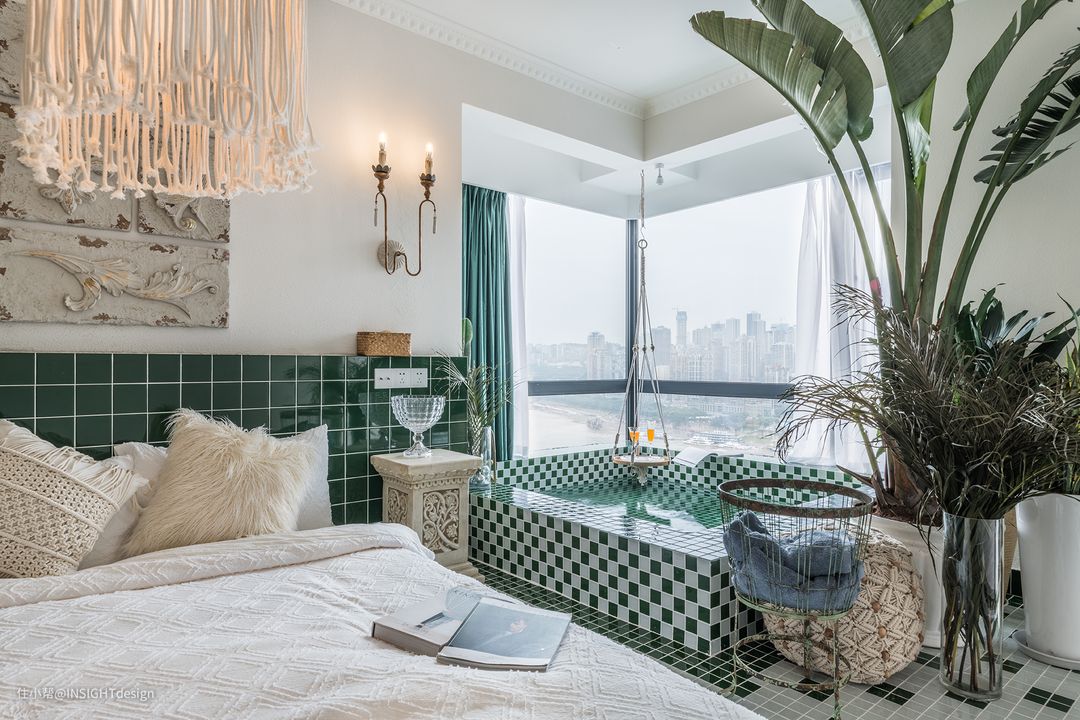 回味两分钟,在主材的选料真是焦够了,坎坷的心路历程。在有限的主材情况下、去挖掘适合的主材的更多的可塑性!烧脑随时进行着~最终在各种困难下,保全!延续!高仿—摩洛哥风情的另一面,置身于大自然的鬼斧神工之地。植物➕迷你游泳池的两大特色,为整个房间创造了超乎想象的惊喜。并且此定位两大主要色系,绿色➕白色作为贯穿整个空间的主体灵魂。很符合摩洛哥那万人为此倾倒的风格,池边就是南滨路的大夜景,视觉冲击力还是比较强。
