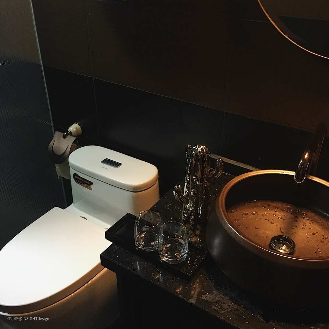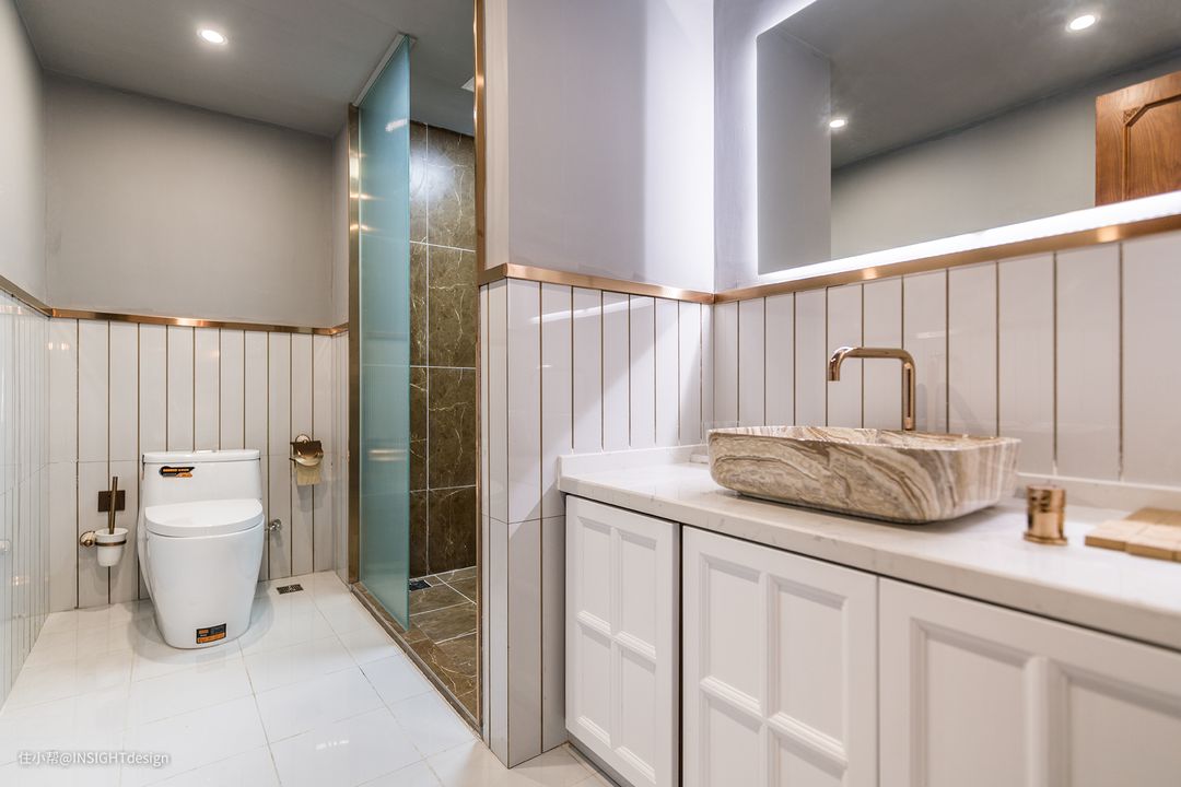 公共卫生间,做了三种拼接手法,质感漆,纯色砖和仿石材咖色砖