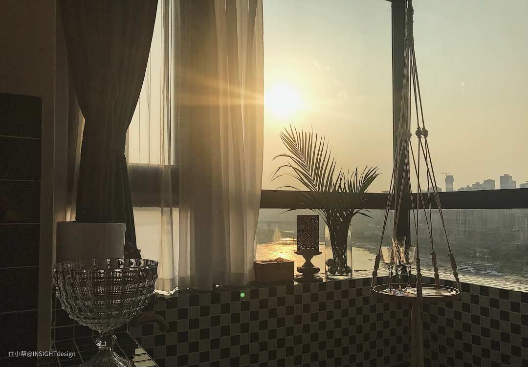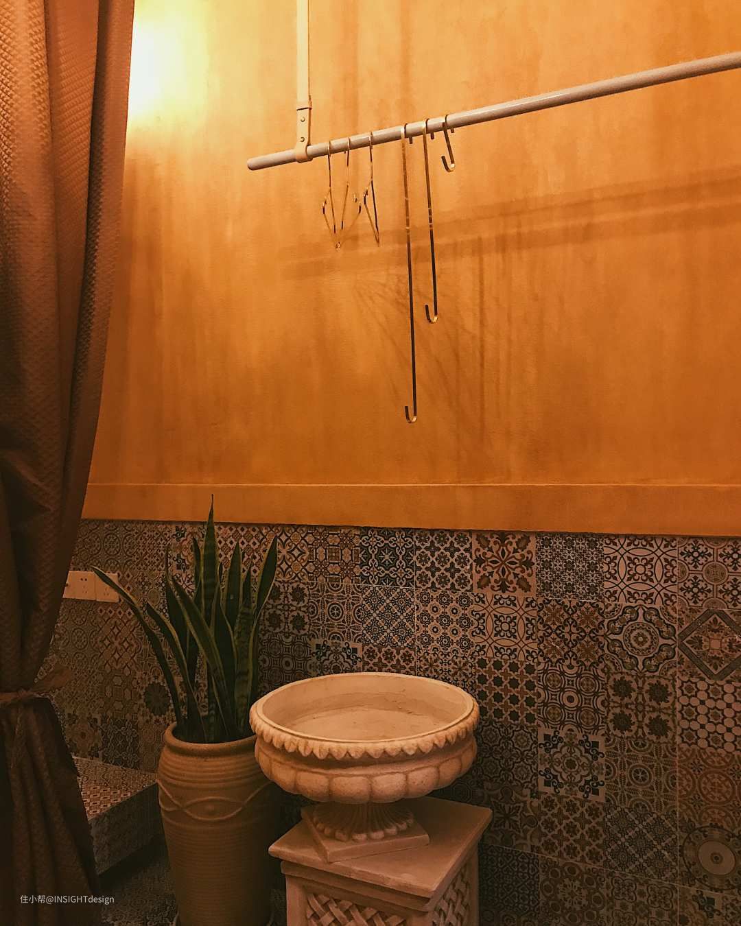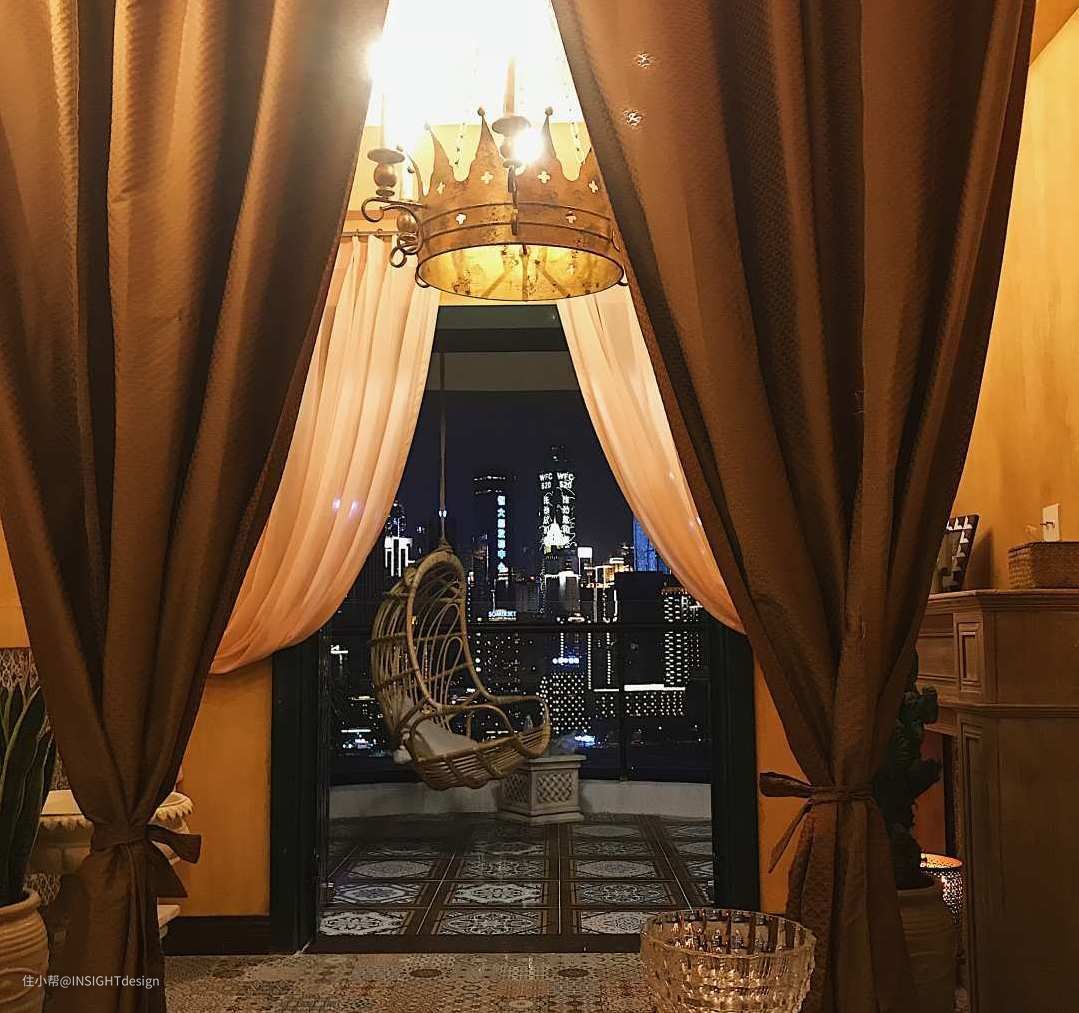 在业主的需求上加入了婧哥的扩展,为了实现摩洛哥式体验感!单从地理环境分析来了解,摩洛哥位于非洲西北端,东接阿尔及利亚,南部为撒哈拉沙漠,这么一看来,捻取了一小部分,从沙漠这个点散发,结合天气-部分地域,走了橘色的调子,再用同色系软装及其主材的为其主题做搭配,恰巧空间小,特别能把小情怀的调性体现出来。开门即面朝南滨路的夜景。