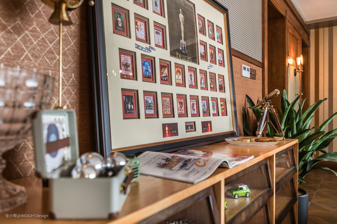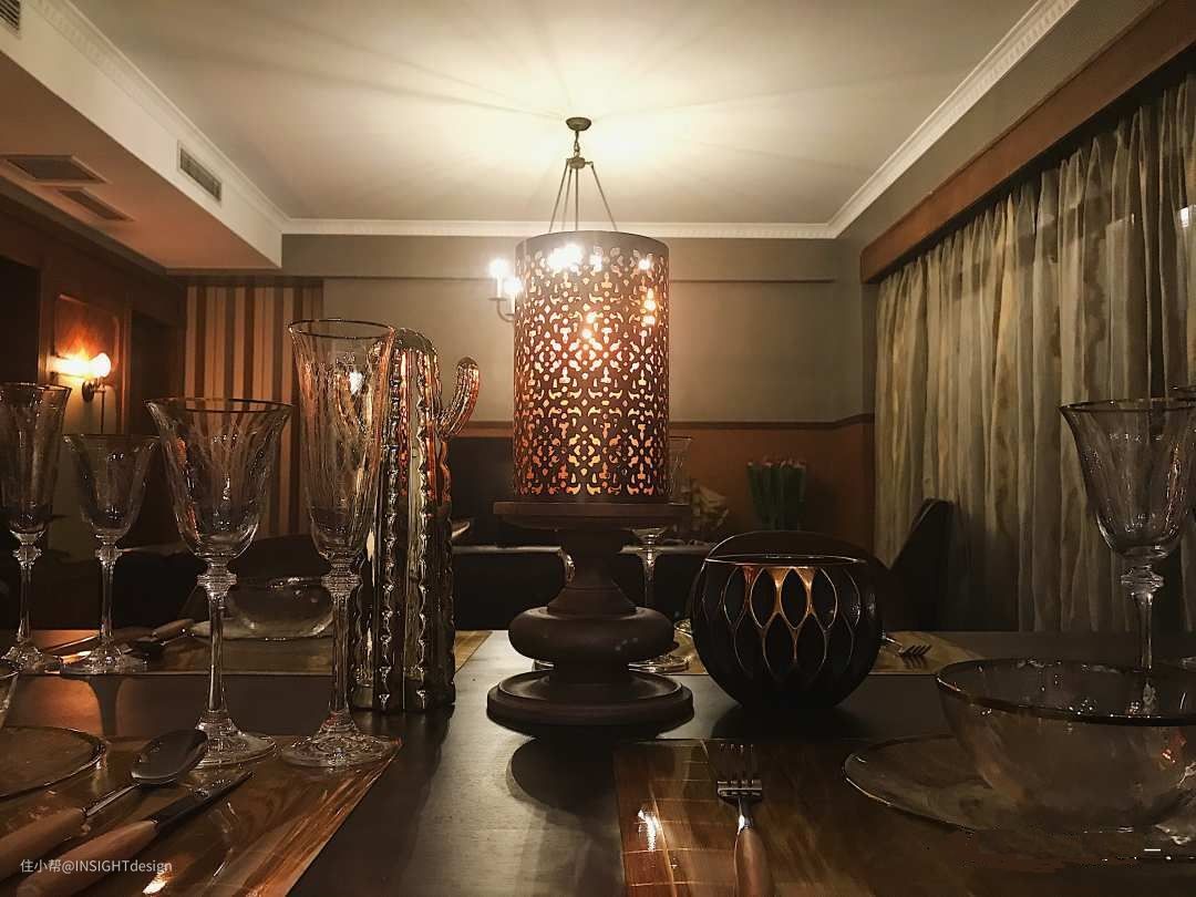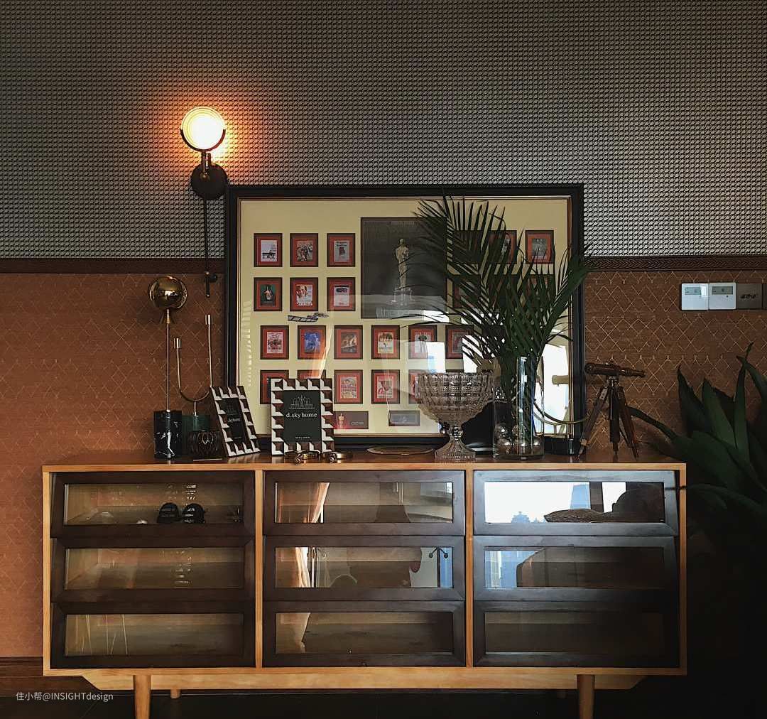 进客厅就能看到陈列背景展示,从捷克人肉带回的香槟红酒杯,深圳展会寻觅的装饰品,自己设计做的家具,木制品。实际操作复古原味,用港式作为灵感引子,牵引出整个色调和所有的内置搭配,其中还用到了茶色的长虹玻璃,这个看不到后面的图,可以大家去发现一下