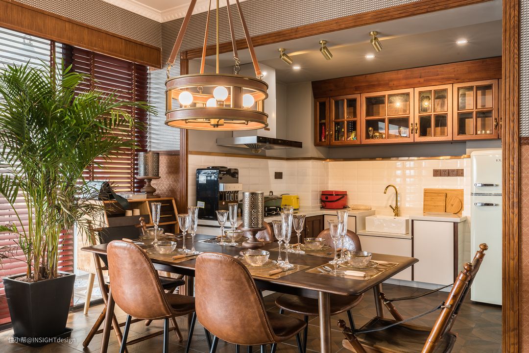 一半厨房一半餐厅,做饭与看电视,做饭与家人互动,相互不耽误,有爱的生活常态