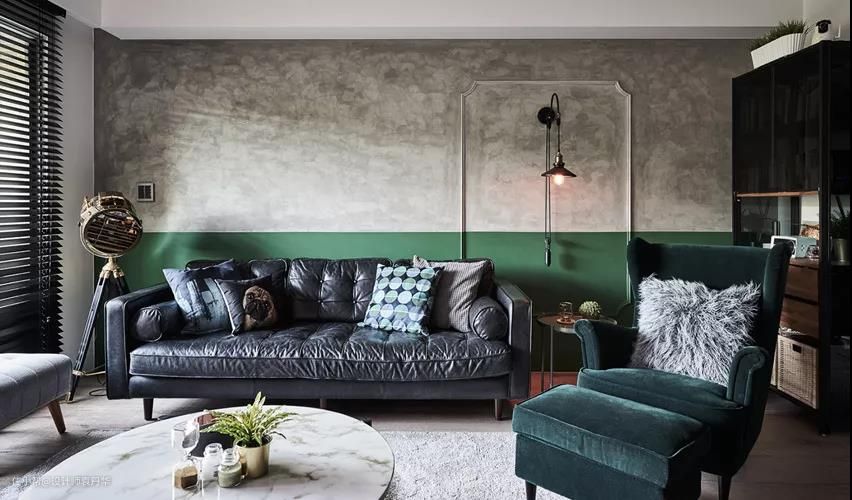 从金属质感的灯具到深色系的家具,整个客厅延续了复古美式风。
