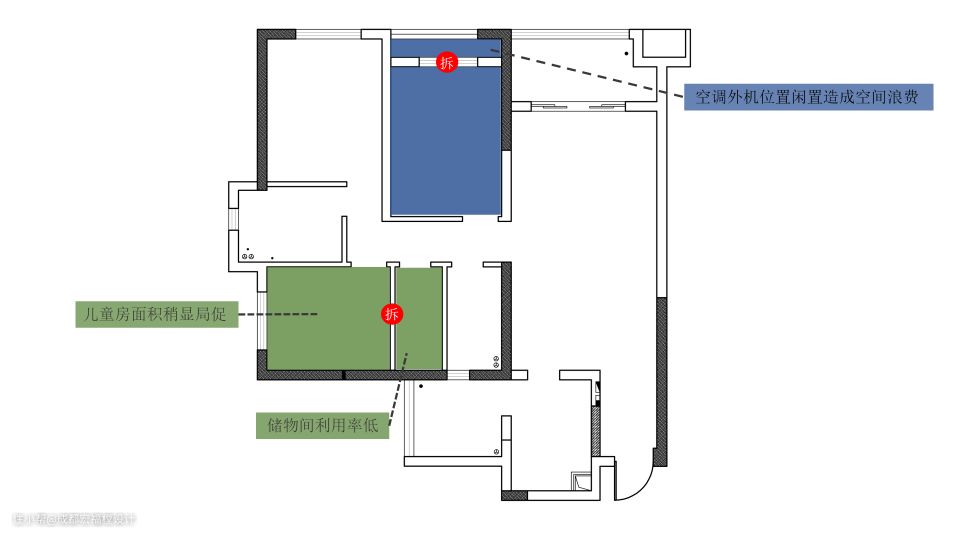 ❸ 书房空调外机位置闲置,造成空间浪费;