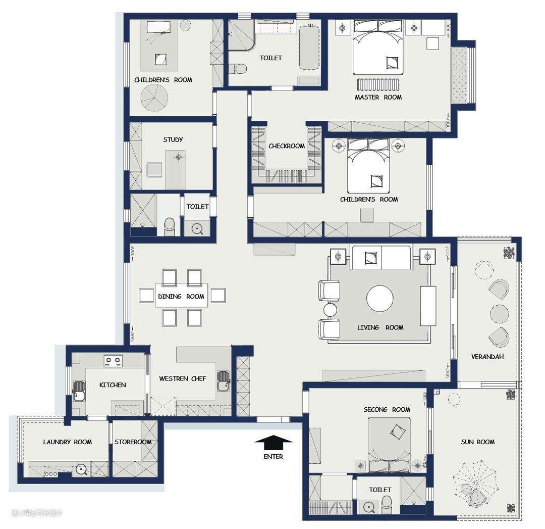 2.洗衣间希望放在北阳台,南阳台只作为休闲娱乐的区域
