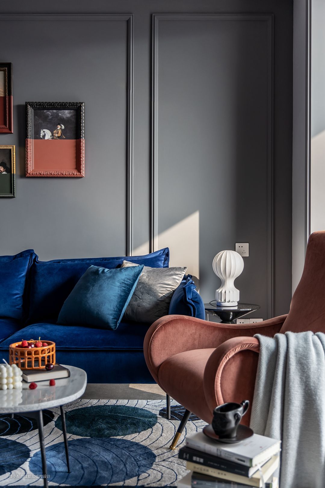 白鲸灰与摩洛哥蓝和太妃糖的撞色,灵动整个空间 #家点颜色#