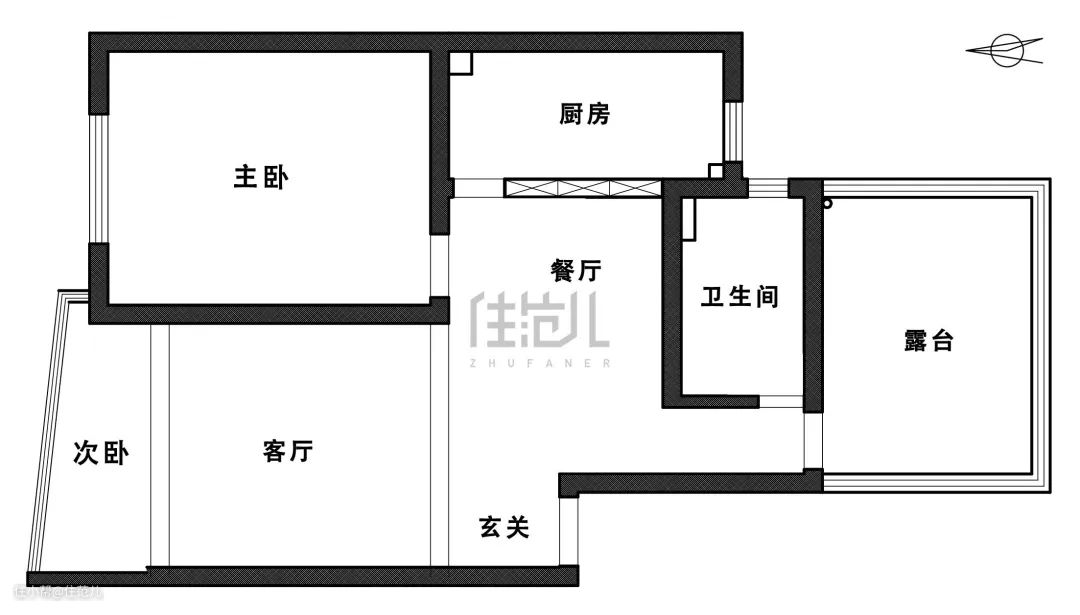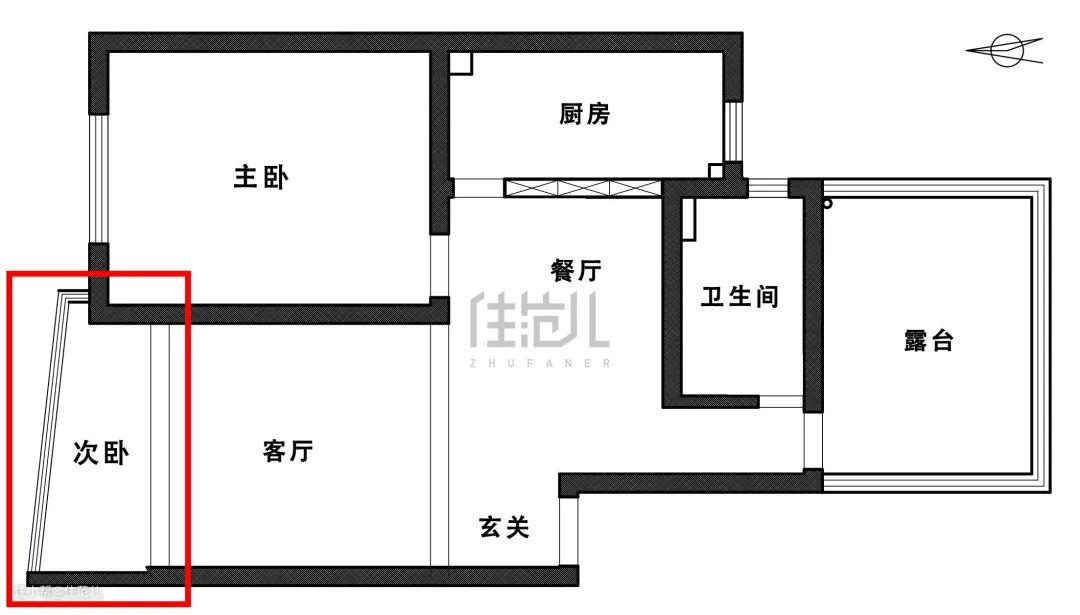 2、更改卧室门的位置,避免厨房油烟进入卧室,并获得整面嵌入式衣柜
