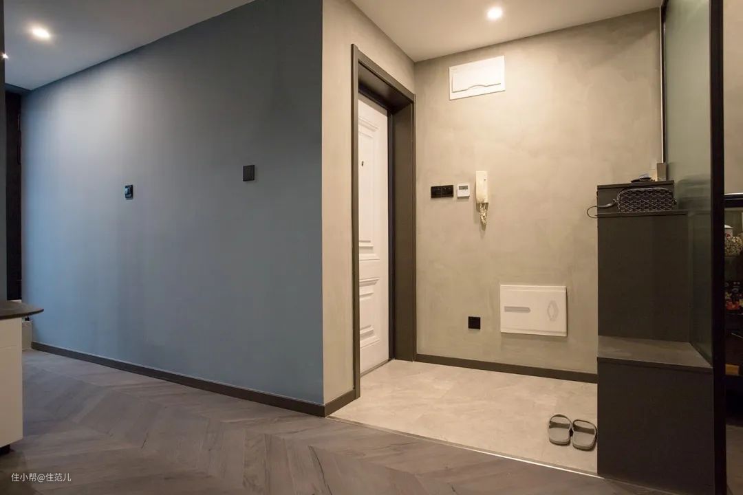 由于玄关整体配色比较克制,白色的强、弱电箱盖板并不突兀。