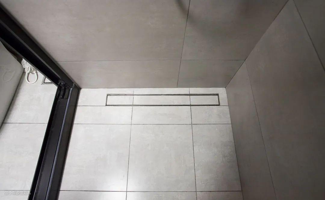 湿区值得安利大家的是,淋浴房里这个长条形隐形地漏。