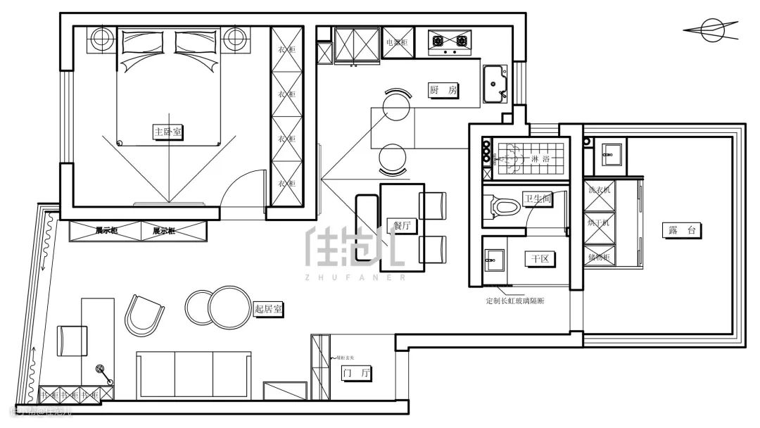 屋主有强烈设计感的需求,认同贵有贵的道理。设计遵循露二藏八,从居住的角度考虑,可适当有露出的地方。