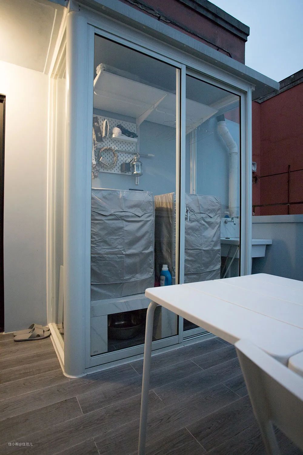 因为上海的政策原因不能做太大的阳光房,只好就着洗衣机尺寸定做一个家务间。