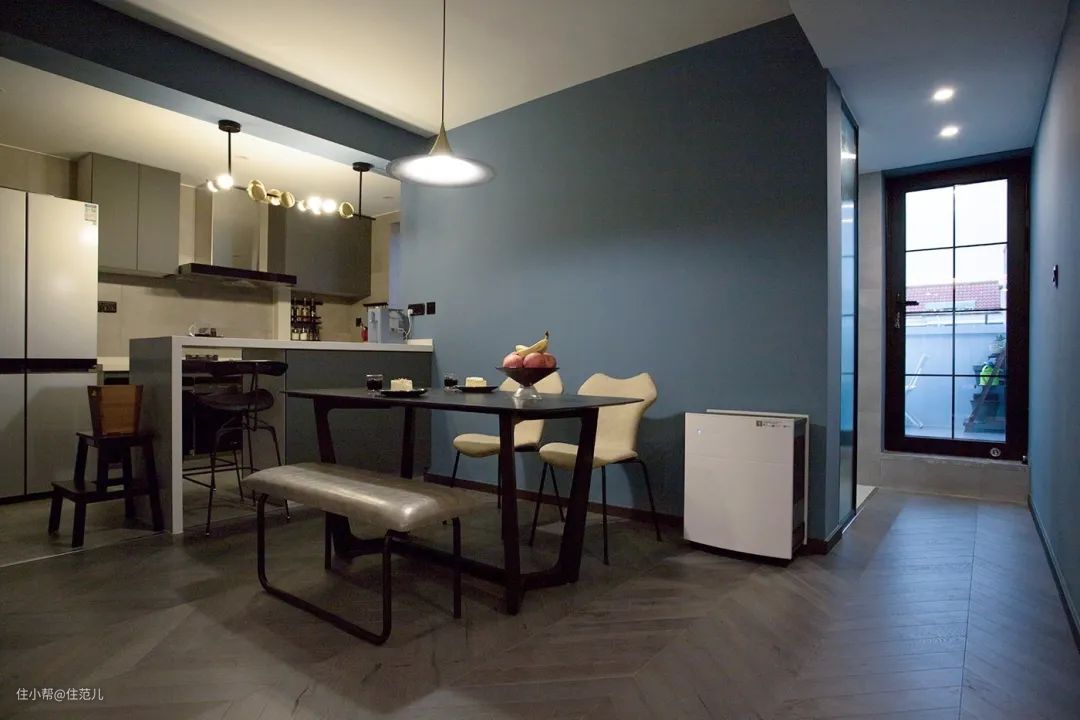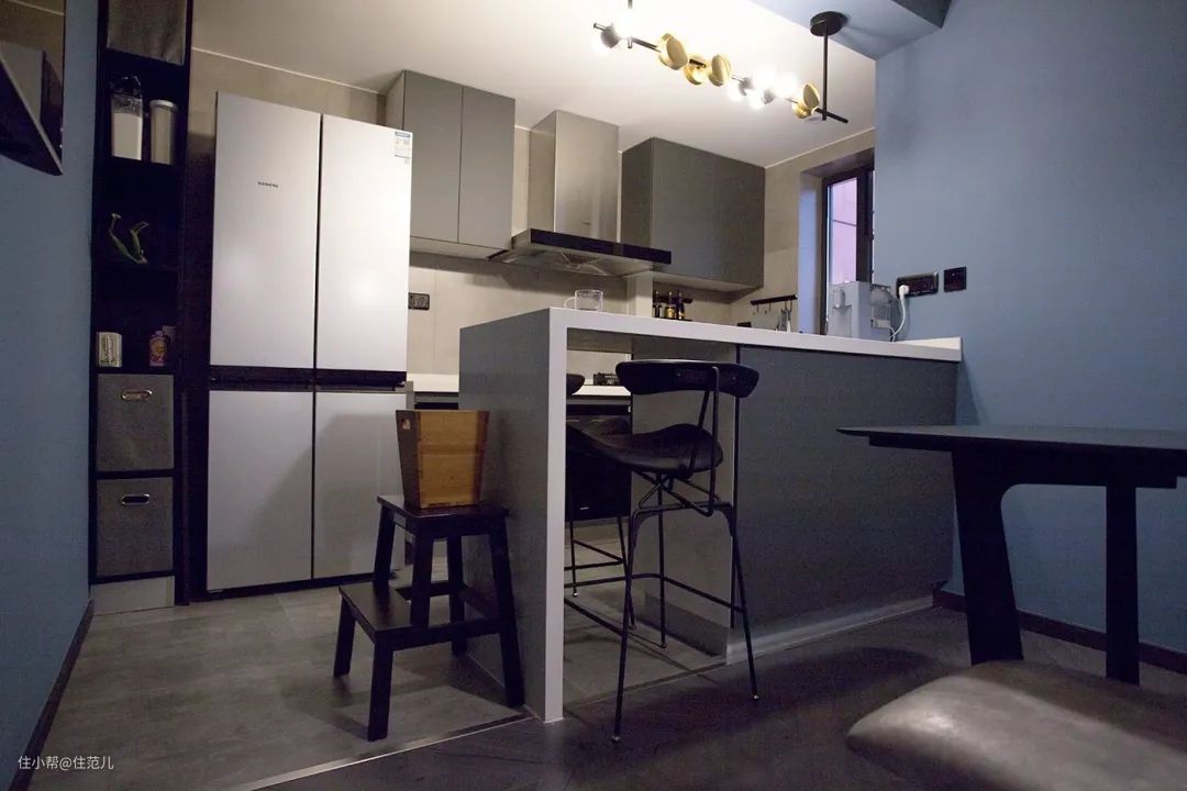 吧台使厨房和用餐区有了明显功能划分,同时又可以做休闲区或简餐台临时放一些物品。