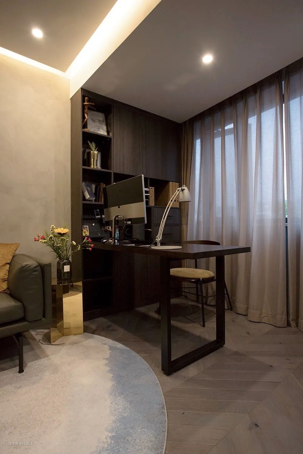 4、打通原本是阳台位置的小次卧,与客厅融为一体变开放式书房