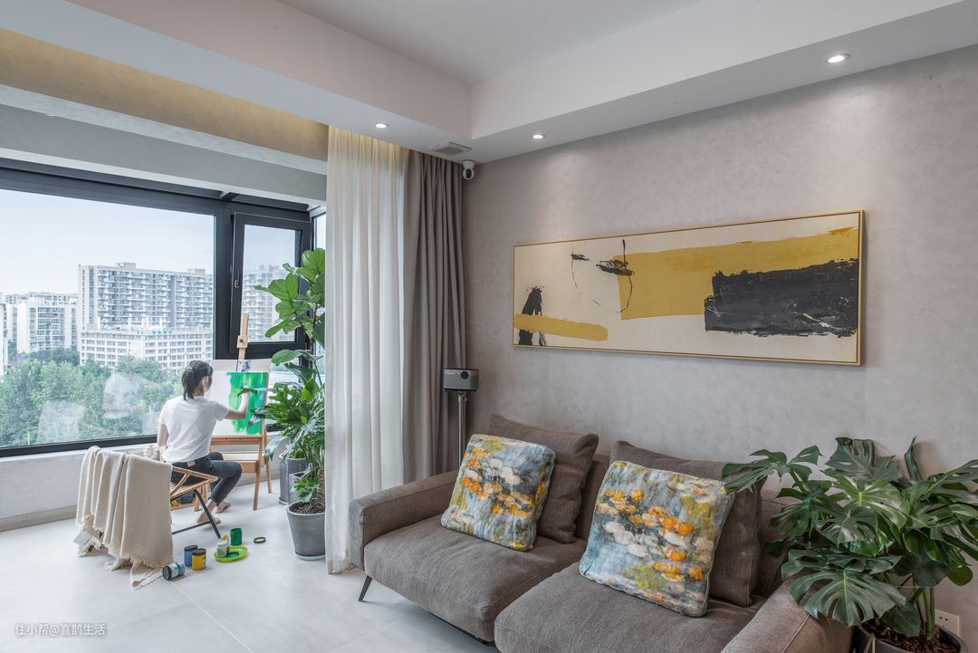 约4米长的阳台,是一家人的乐园。黑板墙能方便爸爸妈妈记录生活和工作,也是小米辣的涂鸦板。阳台另一侧种满了植物,是美牙画画的地方。