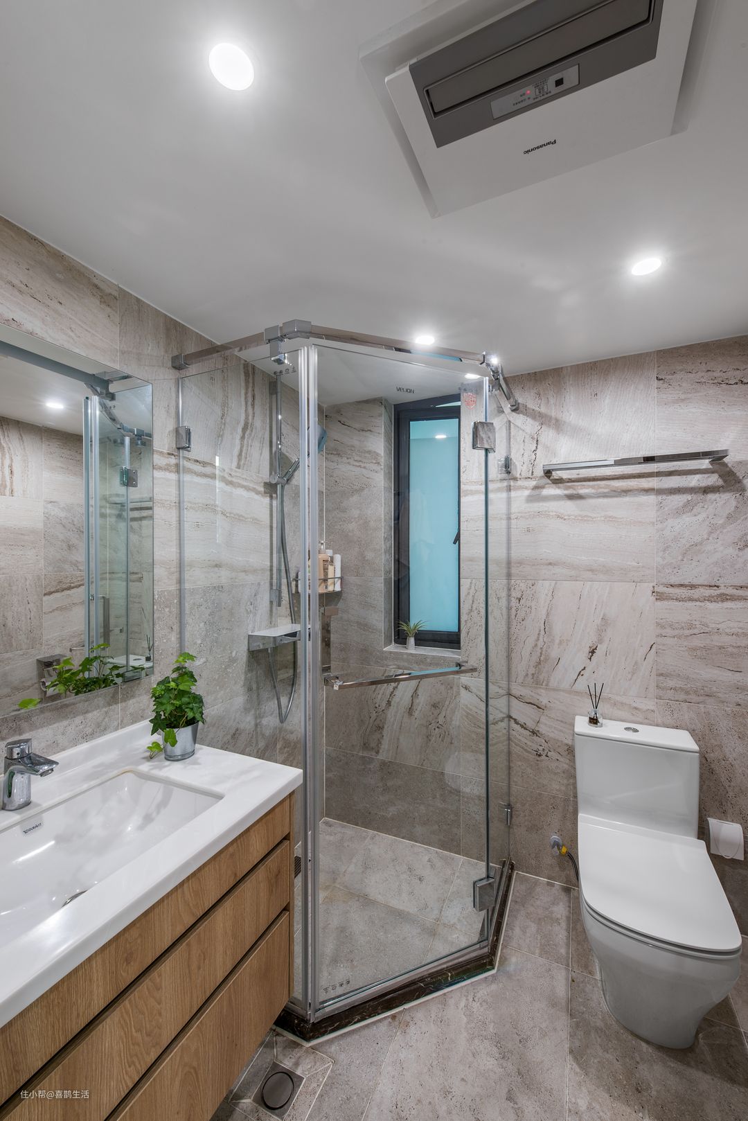 -衣帽间&主卫 -经过设计师的巧妙改造,主卧套房还增加了衣帽间的空间,与主卫相连,使用非常方便。
