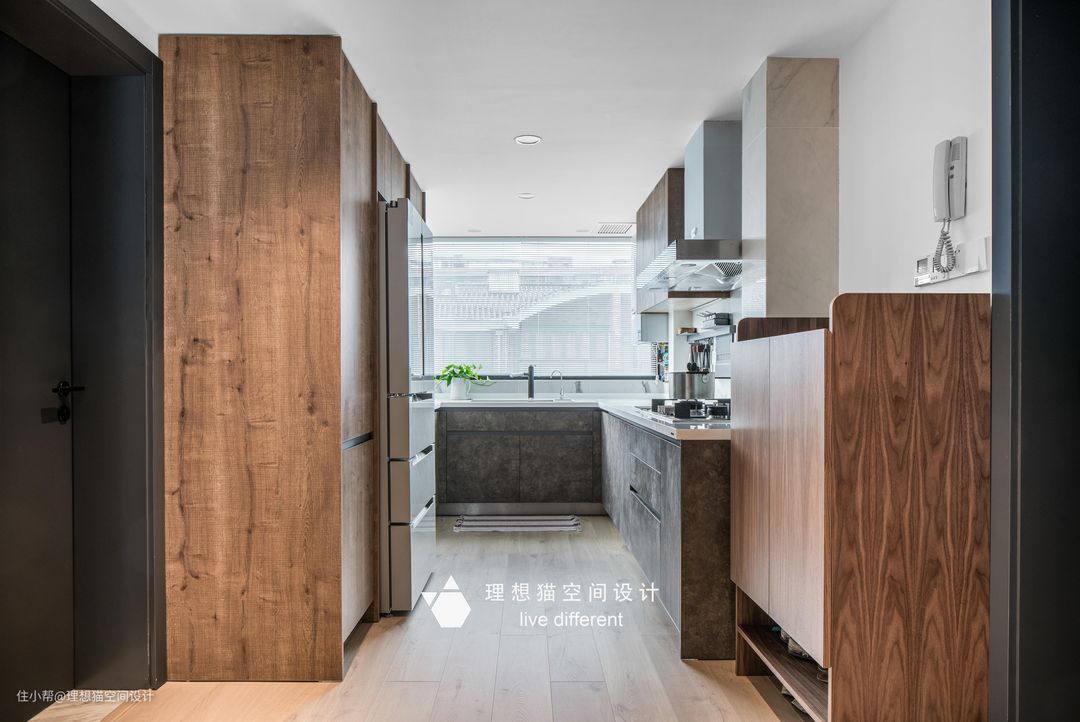 中厨是利用率最高的U字型,一边是灶台一边是冰箱和高柜,高柜可以放下各种杂物和锅子。