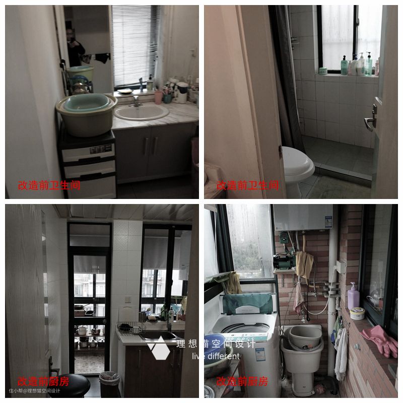 本案中一楼的卫生间,原户型的干湿分离,马桶和淋浴区非常狭窄局促。改回一体式之后,采光和舒适度都得到了大幅提升。
