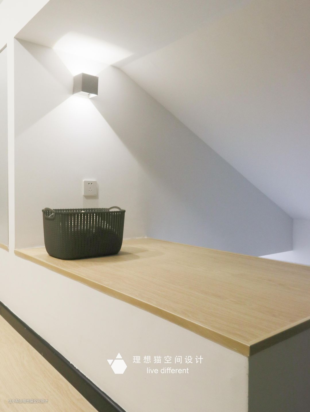 通过对坡顶的精确计算,对楼梯踏步以及阁楼上下不同空间所需层高的精准控制,我们在层高非常有限的坡顶,为女屋主加出了一层,作为她独享的衣帽间,同时一侧留出了木质平台,是提供给女主人的独处空间。