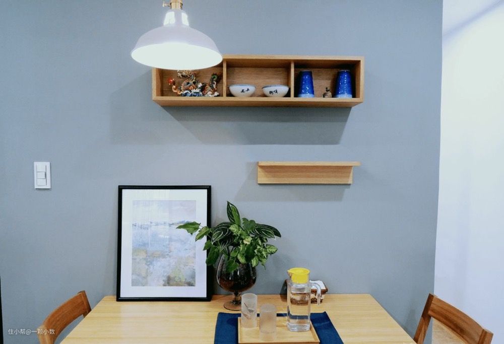 没有过多的装饰,普通的一桌四椅,固定在简约吊灯,映射的灯光正好覆盖整张桌子,清新又舒适。