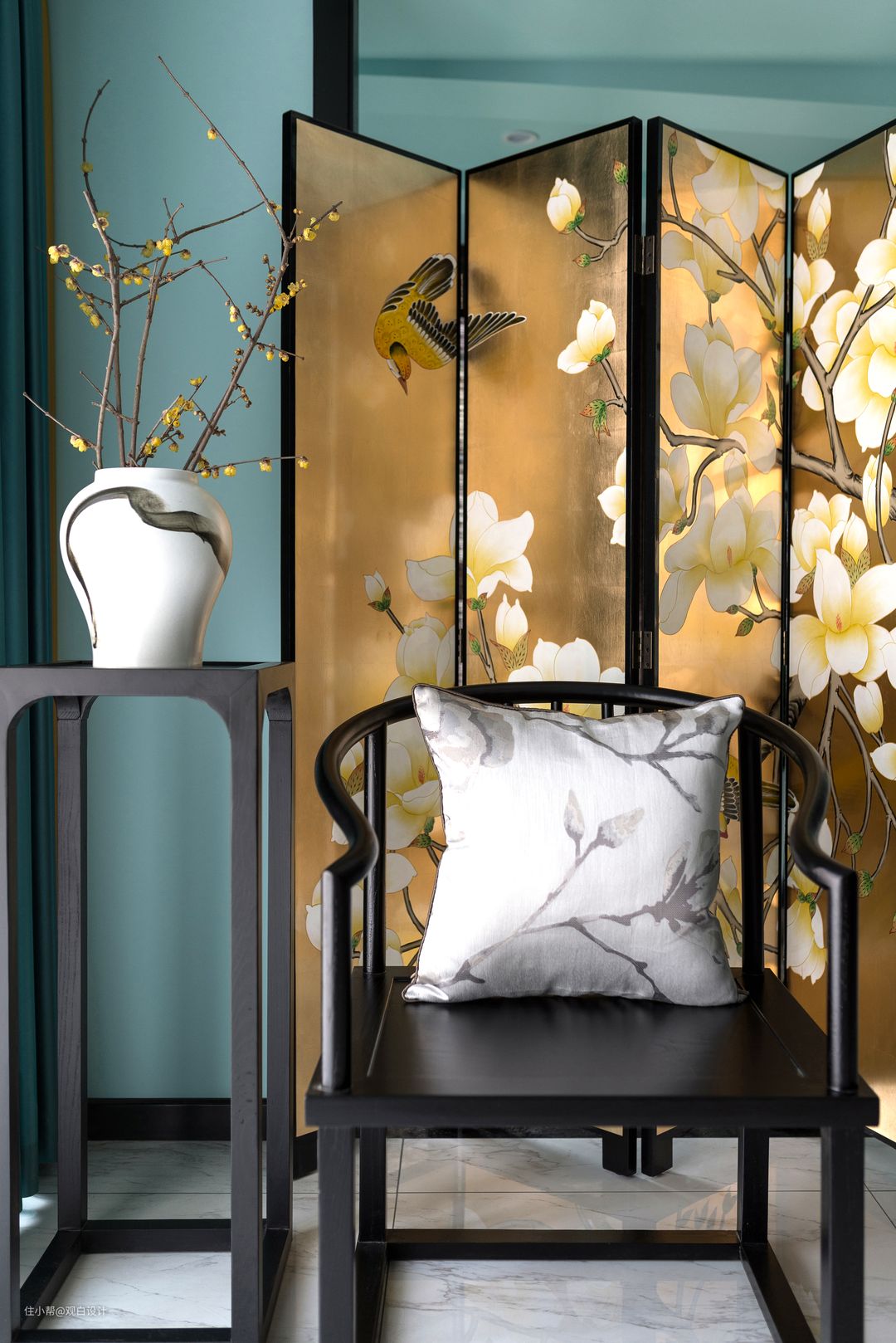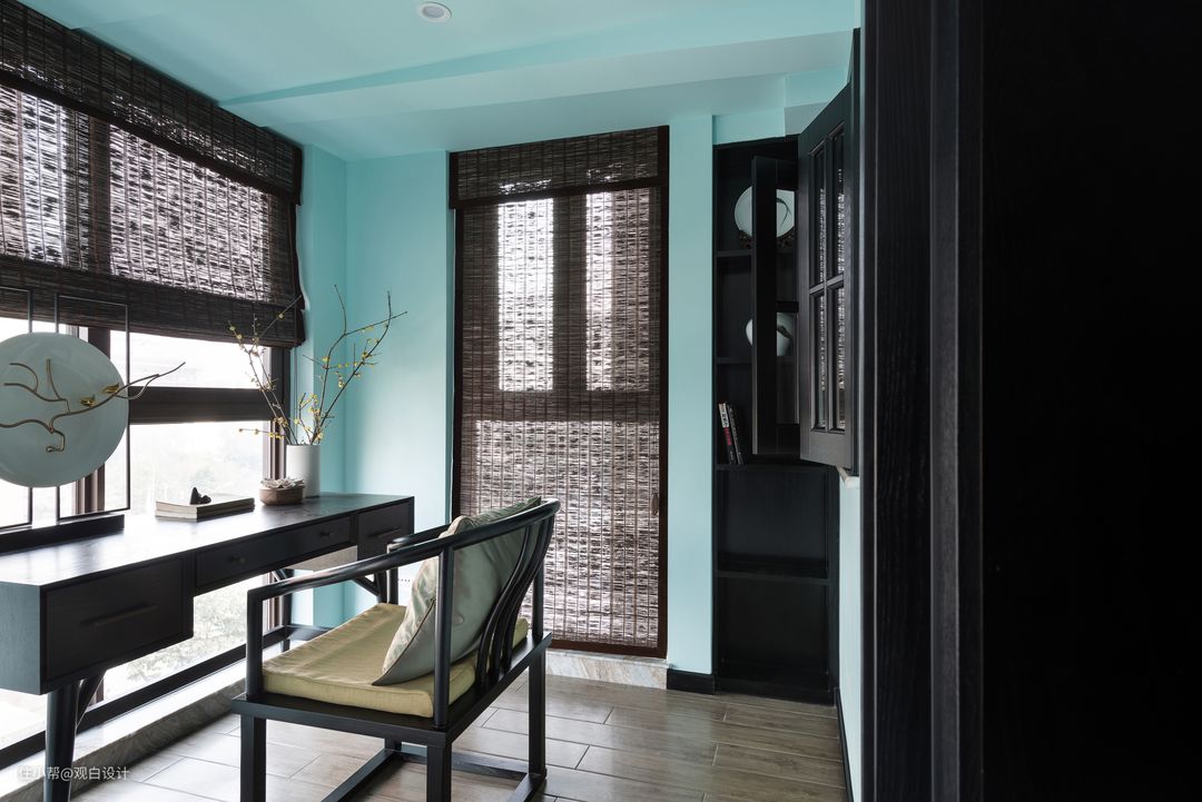 3.三个房间是这个家庭必备的,业主需要一个小空间满足偶尔的办公,牺牲阳台局部空间做了一个小书房,中间中式折叠屏风起到视觉划分,平时也可以收起来营造视觉层次。