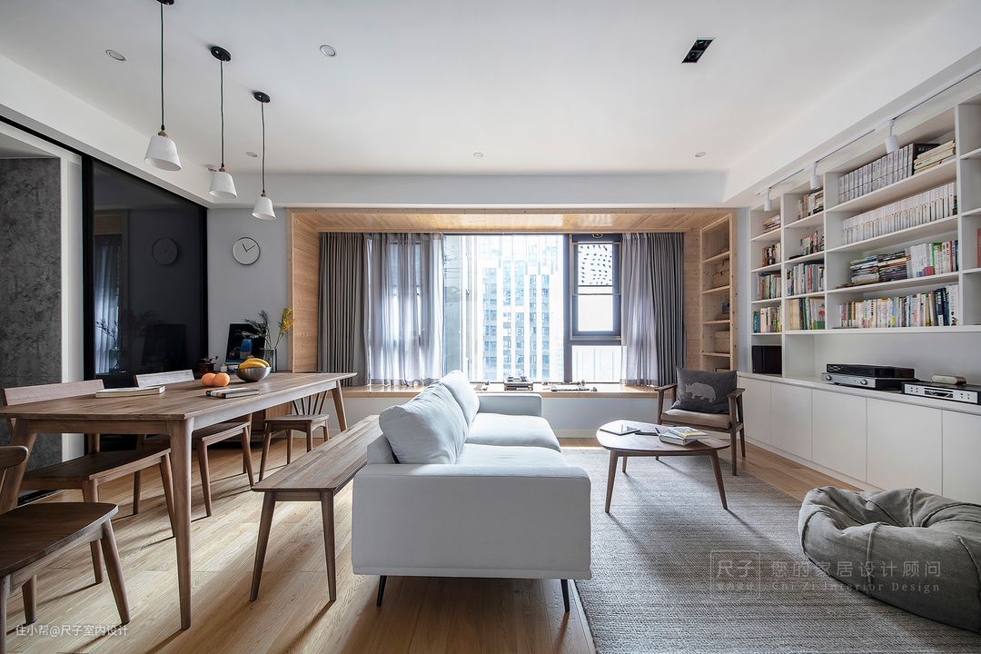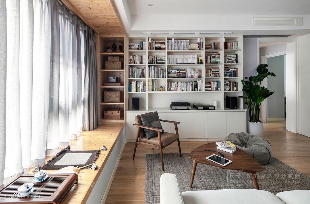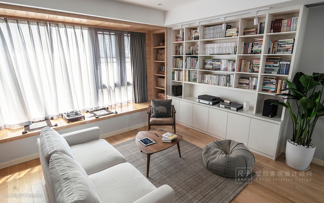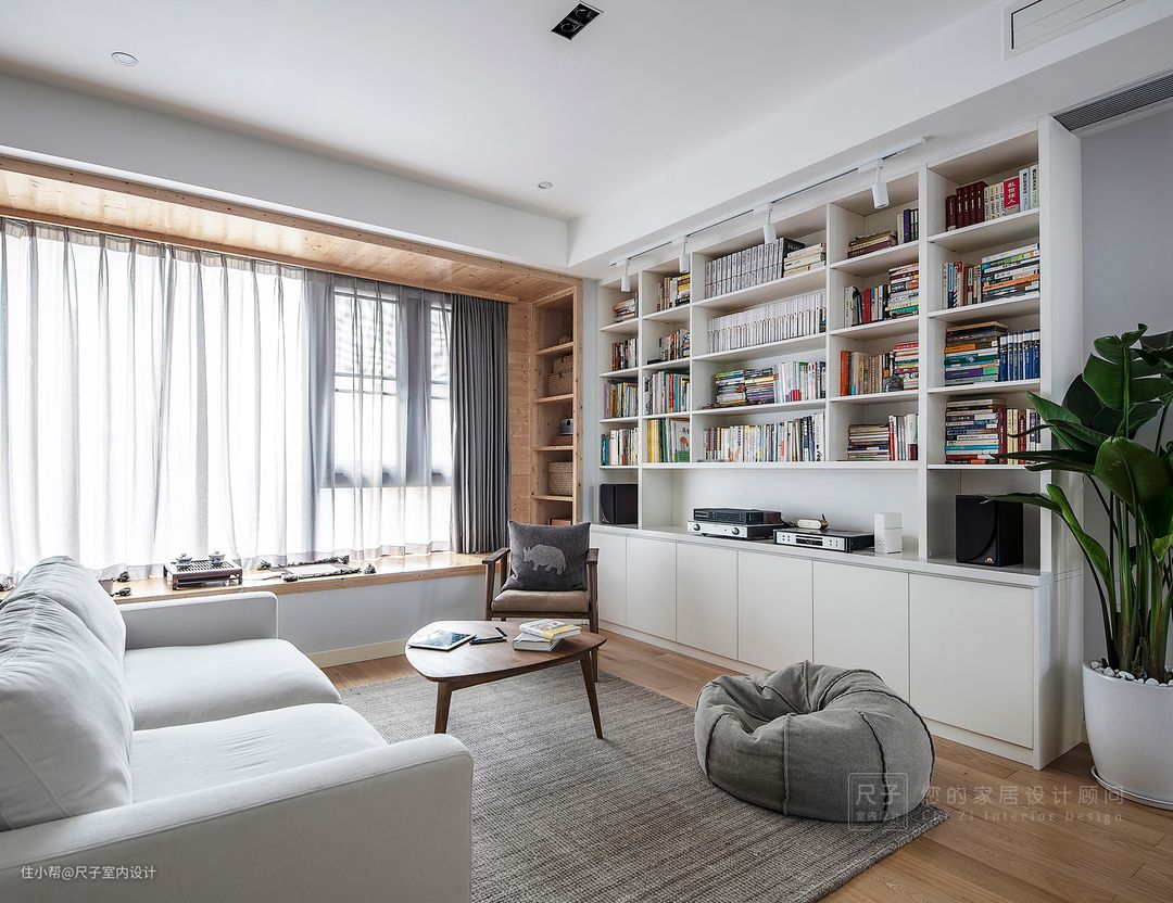 89㎡日式原木风,书架墙、投影还有长飘窗,打造家庭核心区