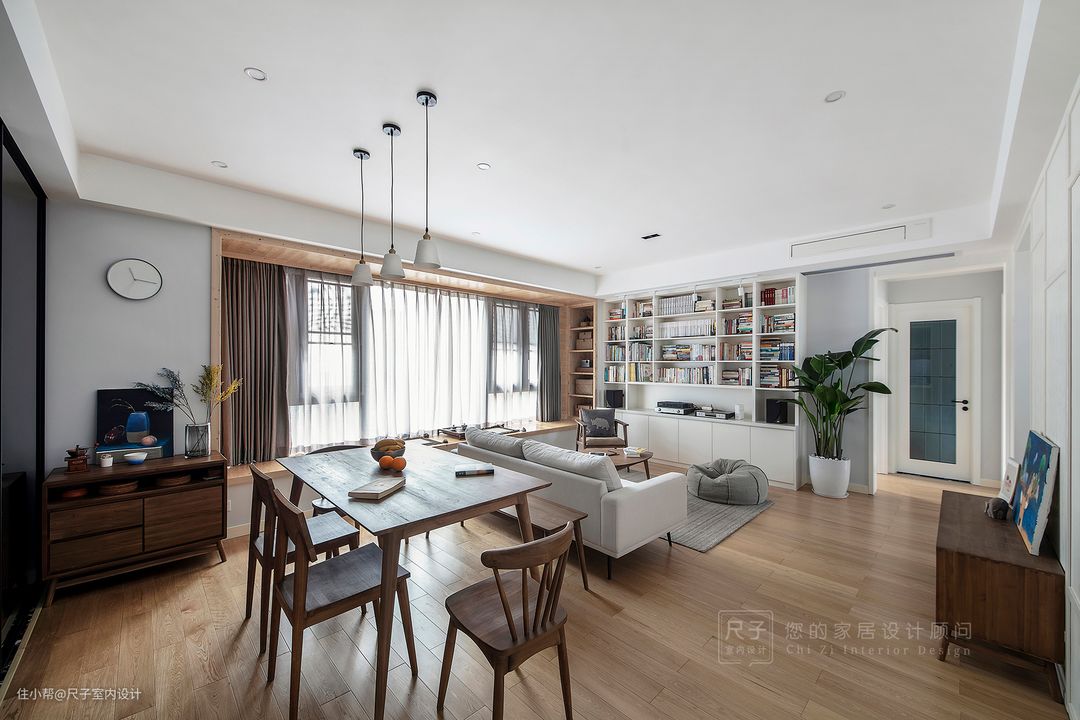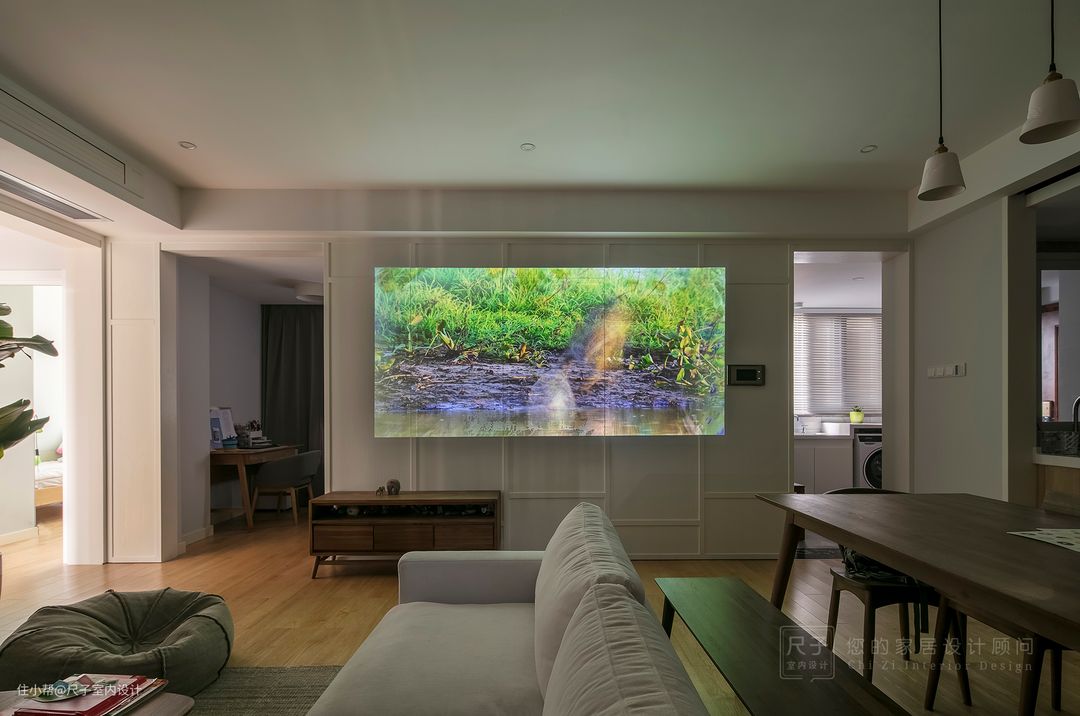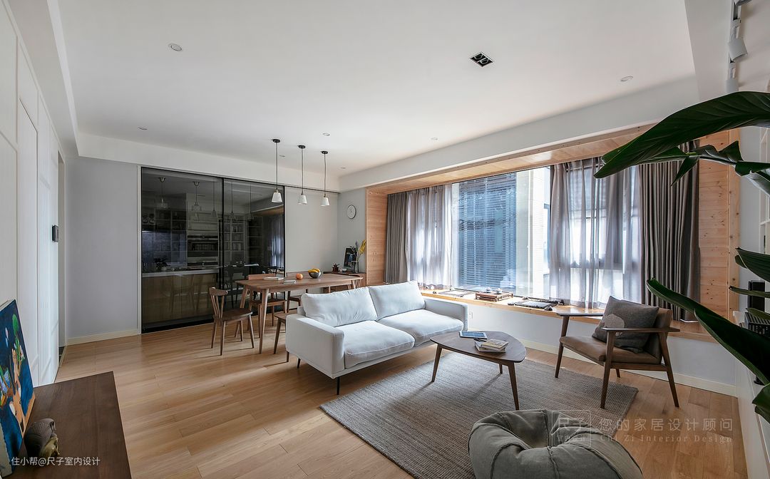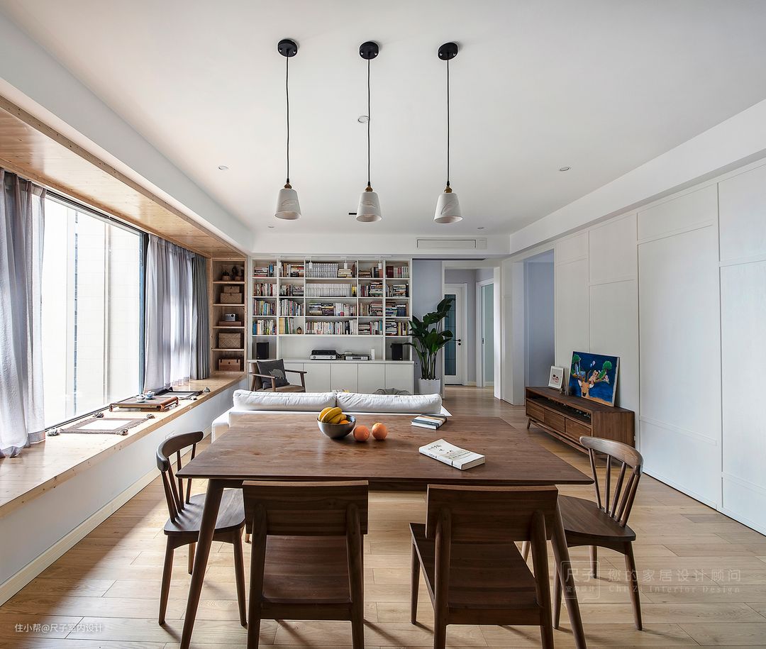 89㎡日式原木风,书架墙、投影还有长飘窗,打造家庭核心区