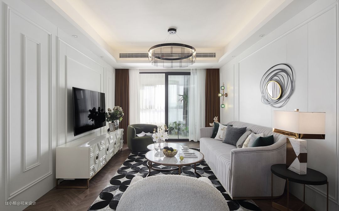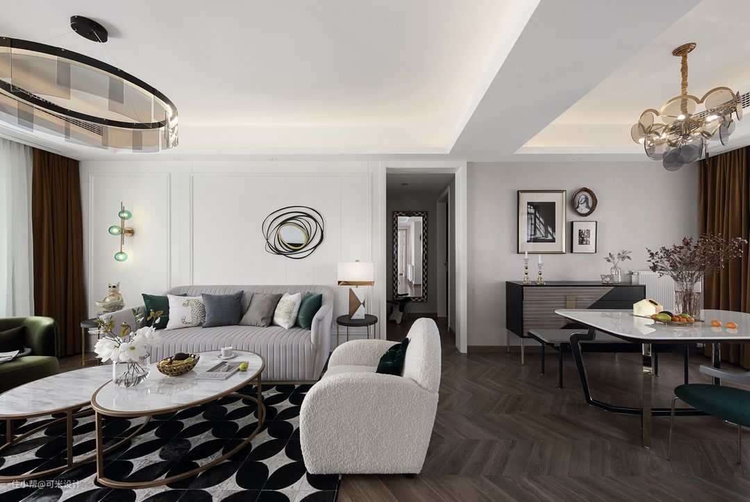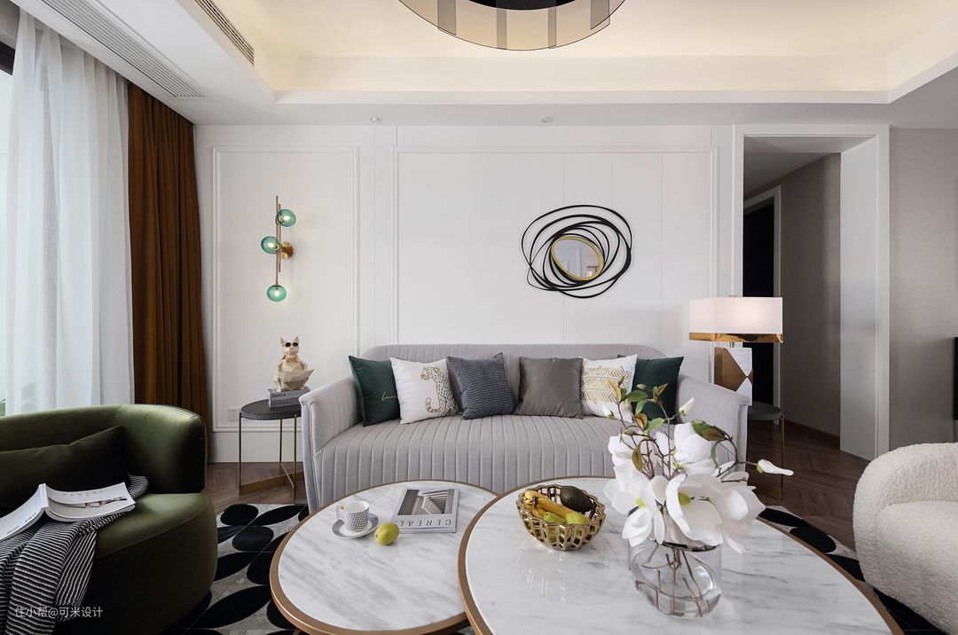记得是在一天上午联系我们的,当时刚拿到交付的现房,希望尽快见面把设计确定下来,早点装修,好散味道。他们想要轻奢或者现代美式的感觉,经过第一次双方的交流,就把设计方向确定好了,通过几次方案的讨论和落地的实现,最终呈现出了这套时尚轻奢风,非常符合他们夫妻俩的生活状态。