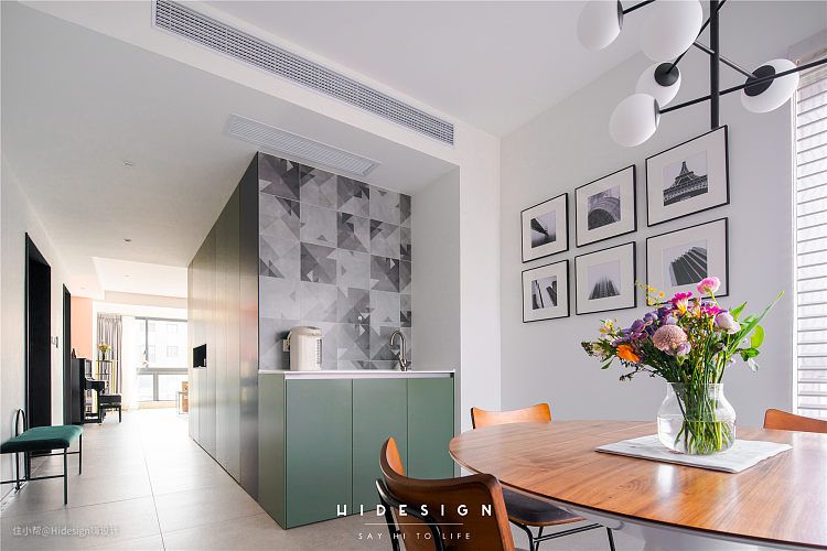 和这面墙体连接在一起的就是一个餐厅料理台,方便家人备餐和做一些简单的清洁工作。
