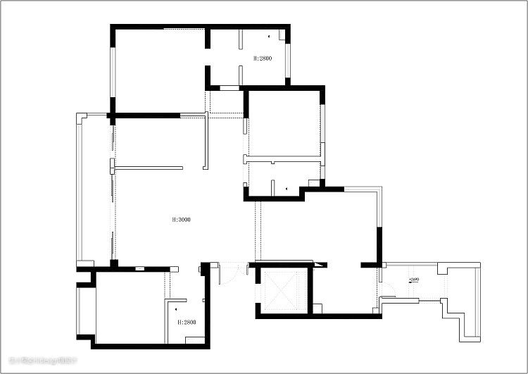 原始户型的面积并不小,但是存在几个明显的缺点: