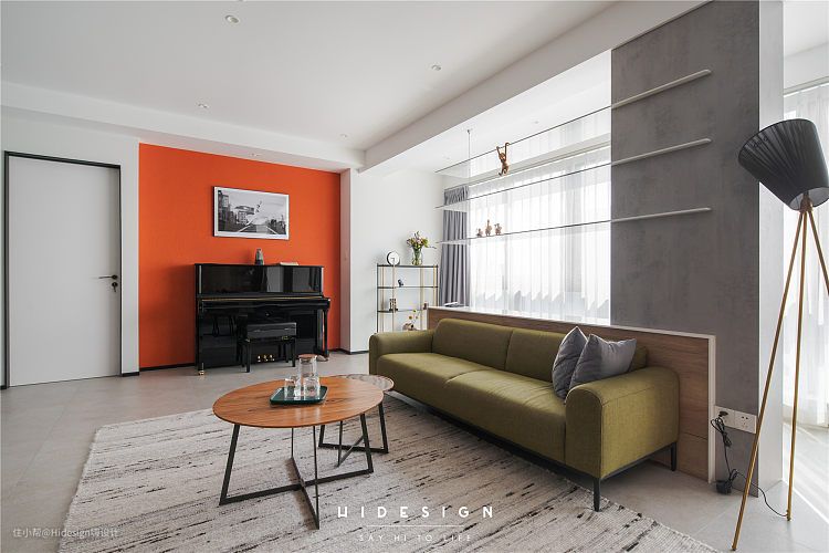 沙发后方还设置了一排低柜,避免了沙发置中悬空的格局,还兼顾了储物功能,低柜还能方便小孩子拿取常用的物品。