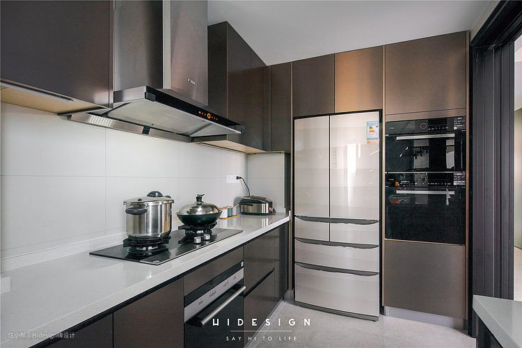 厨房区域连通了原来部分的工作阳台,轻松容纳大量的厨房电器。