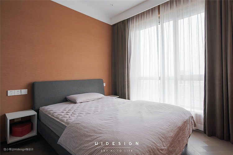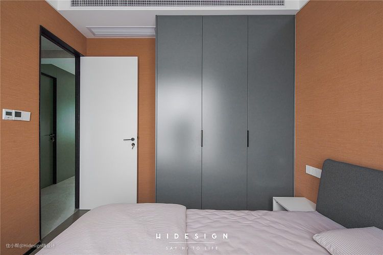 次卧的配色上考虑到老人家的喜好,灰色+大地色的配色让空间沉稳又不失活力。