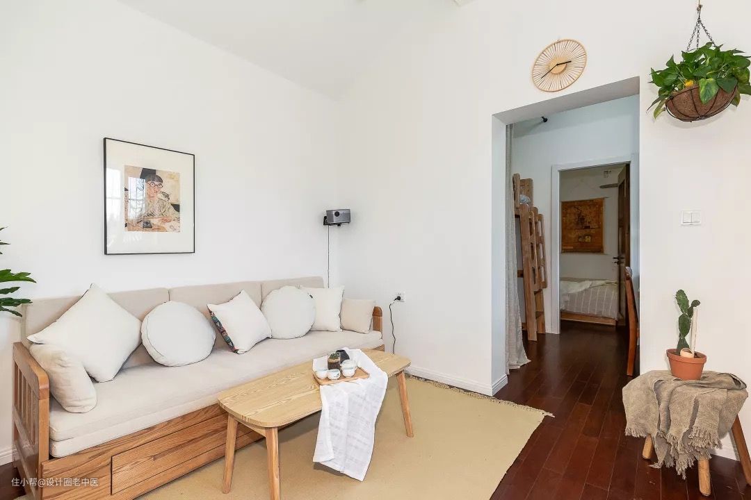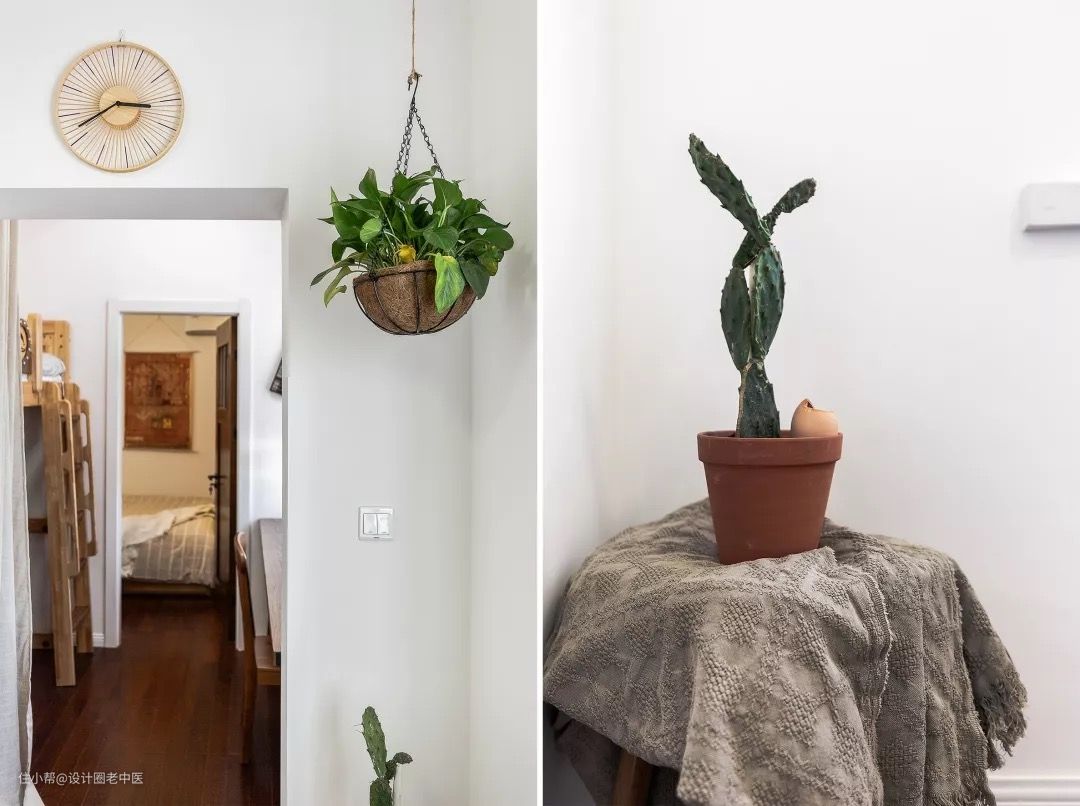 白色和原木色能给空间带来明亮温暖的氛围,绿植则是让空间具备生气和绿意的法宝。