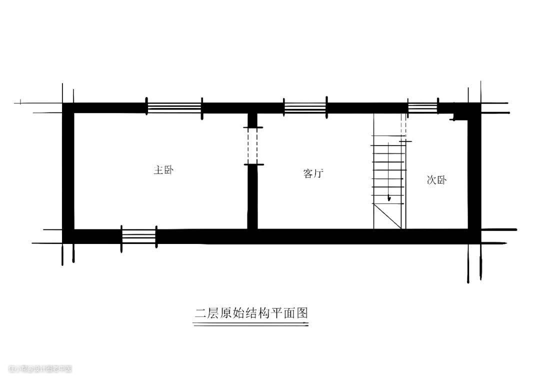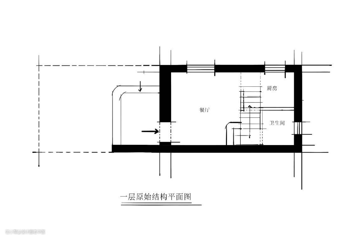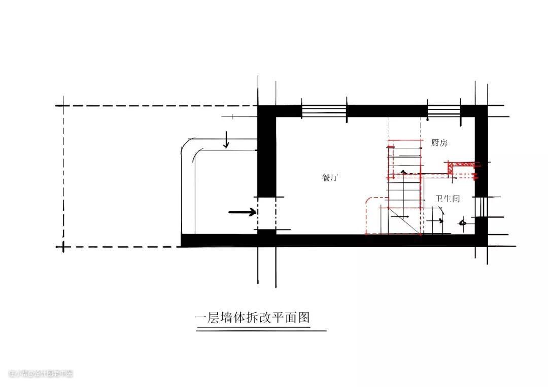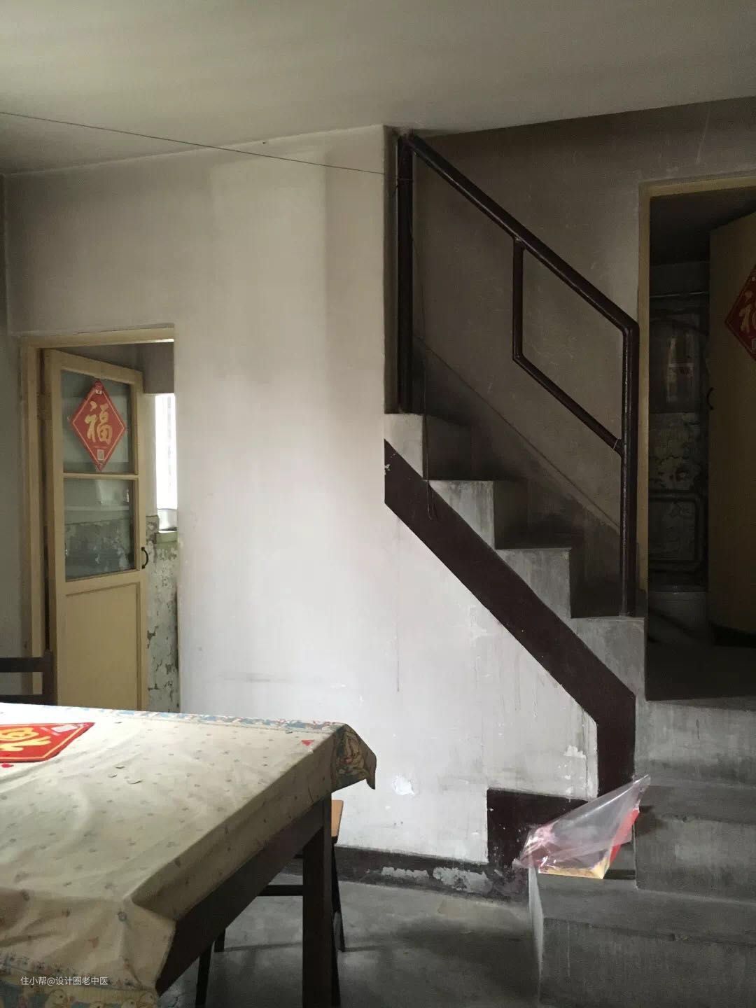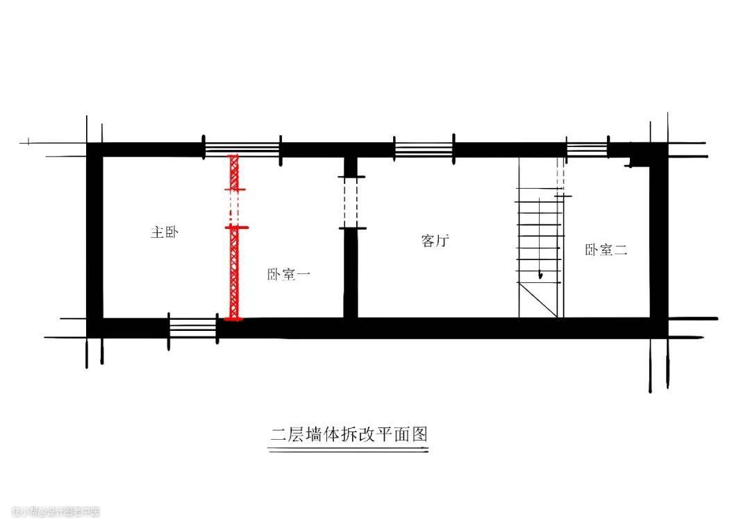 改造措施:拆掉现浇的楼梯改用空间利用率更高的钢结构代替。毕竟这地段一平米都10w+了,卫生间空间很小洗个澡基本没落脚洗澡的地儿,所以拆掉了厨房和卫生间中间的墙往厨房的方向让出了一个壁挂马桶水箱的位置,这样可以有一个独立的淋浴空间方便洗澡,二层也是根据客户需求做了调整,需求就是能多住人,所以把主卧室从单一功能变成了“主卧室+儿童房+书房”用来满足儿童居住的需求。