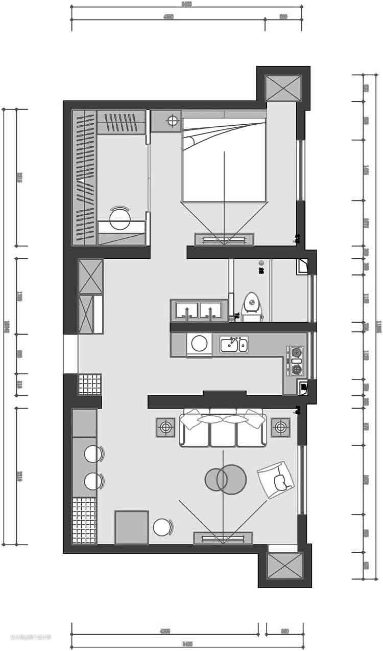 在进行设计之前,和业主有过简单的沟通。首先,男主人从小在这个房子里长大,现在,他也要在这里迎娶他的新娘,但是他并不想使房子还保留原始的状态,因为住的时间太久了,房子的优缺点他很明了;其次,他和女主人有自己独特的审美风格,希望融入到新家里面。所以我们对房子进行了如下改动。