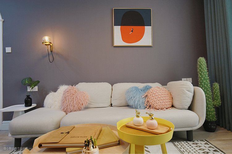 关于客厅的颜色搭配,整个空间采用了80%的灰➕10%的白色➕其他跳色,虽然主调很简单,但是因为加入了黄色,原木色,挂画的黄铜质感等暖色系的东西,所以整个空间实际出来并不单调。所以关于配色,并不是一味地白就好看,白色也并不百搭。把颜色大胆的搭配起来,反而会有意想不到的收获。