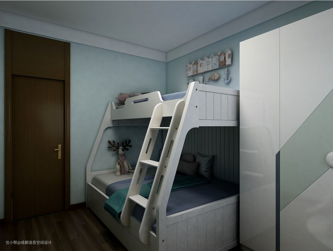 主卧、老人房、儿童房都保持现代简约的软装搭配,色彩搭配遵循少即是多的原理,以此保证休憩场所服务睡眠的主要需求。