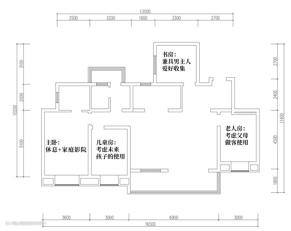 2. 次卧改动为书房,兼具男主人的爱好收藏(房间挨着门户,隐私性不足)