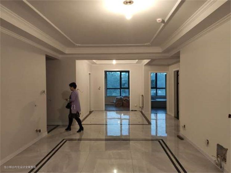 从现场照片中可以看到硬装已经完成,墙面虽然贴了壁纸但与屋主喜爱的法式风格相差甚远,整体造型单调无设计感以及轻松舒适的生活氛围。