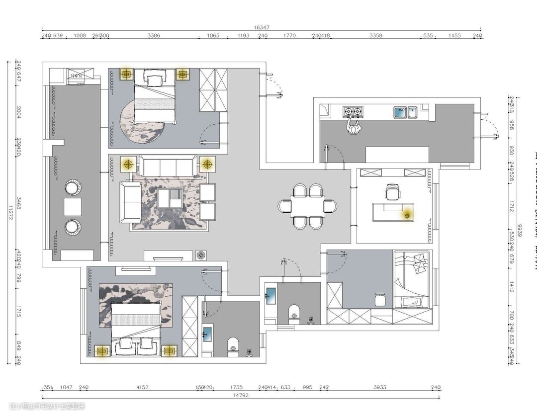 考虑到原本硬装的成本,大动格局是不切实际的。因此,我们在保持原有的户型格局下,对墙面、定制柜、吊顶等重新进行调整。