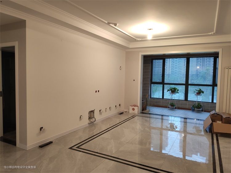 从现场照片中可以看到硬装已经完成,墙面虽然贴了壁纸但与屋主喜爱的法式风格相差甚远,整体造型单调无设计感以及轻松舒适的生活氛围。