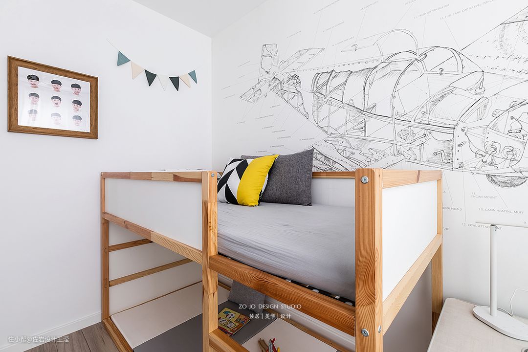 经过储藏室就来到了儿童房,宝宝现在还小,所以儿童房的家具都选择的是更加轻盈易搬动的设计,家具大部分来自宜家,高低床为KURA 库拉两用高低床,上下可翻转,现在用的这种方式,下面可作为宝宝的游客区或者睡觉区,低矮的设计没有掉床的风险,上方也可以偶尔接待下家中的客人。等宝宝大了需要独立一个房间时,也可以把床翻转过来,使床变为一个高床,更适合大点的宝宝。