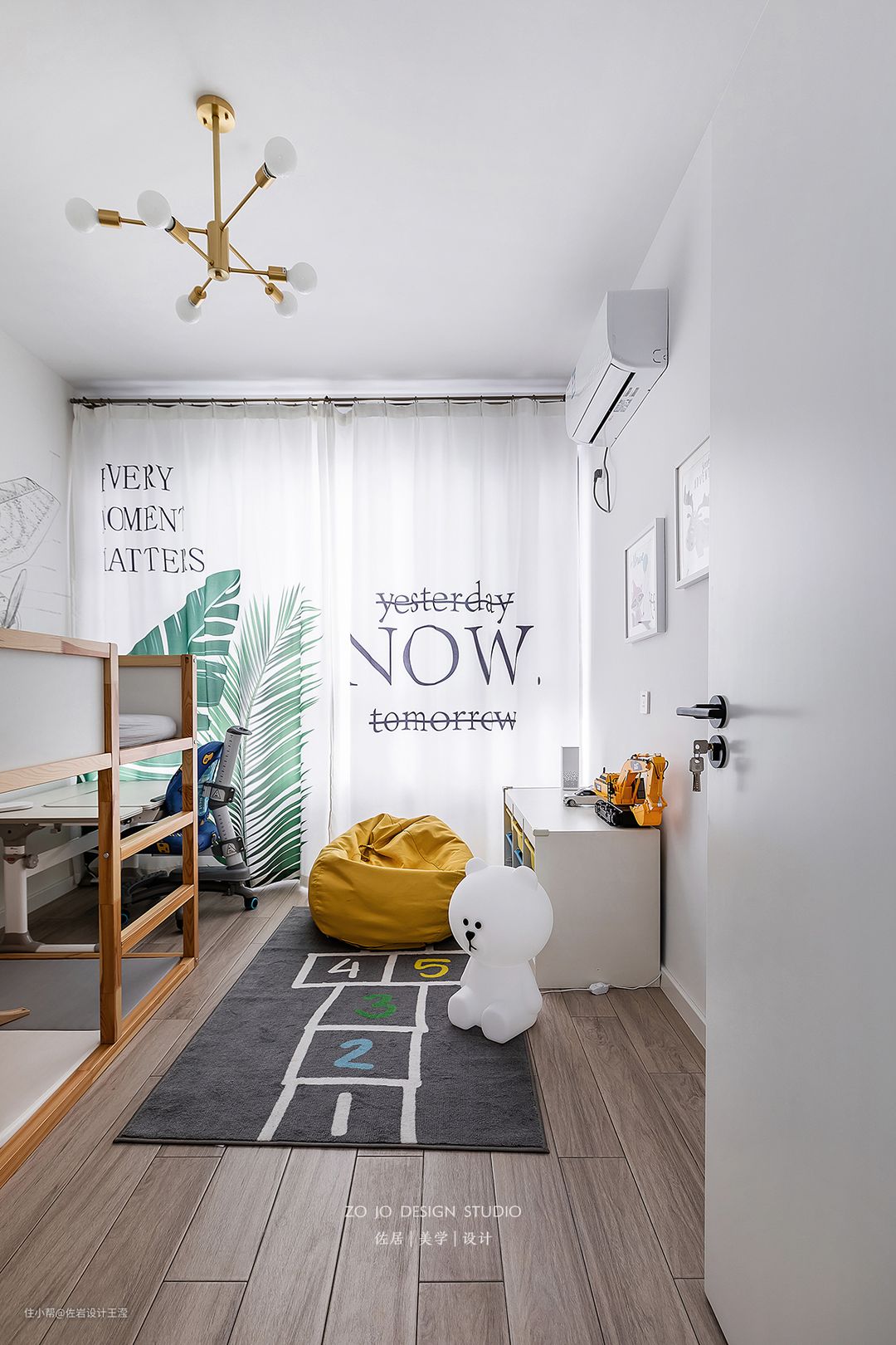 从户型图上可以看到,儿童房的长度非常长,达到了5米,而宽度不足2.8米,作为一个儿童房有些狭长,使用起来不免有些浪费,因为有了宝宝,家里的各种囤货会大大增多,于是划分了一部分作为储藏室,可以完整收纳家中的各个大件,例如电风扇、行李箱、换季衣物、换季床上套件以及各种各样小朋友的囤货。储藏室的对面仍有一部分空间,搁置起来不免浪费,于是就地做了一个薄型的收纳柜,上面搭配展示架,增加了收纳空间的同时,也不显得沉闷。 储藏室是用的宜家的Algot艾格特系列,没有选用常规的木制定制,一方面是出于减少甲醛的原因,因为这个空间没有窗户不易散味,而且又更靠近儿童房,而以金属为主要原材料的艾格特就几乎没有这个问题,另一方便艾格特的拆安都非常灵活,可以更好的提高空间的利用率,提供更灵活自由的收纳方式,这点对于储藏室来说至关重要。有了这个看似不起眼的储藏室,却能极大解决家中的收纳问题,而儿童房的空间也回归了正常的户型,家具摆放起来更加协调。
