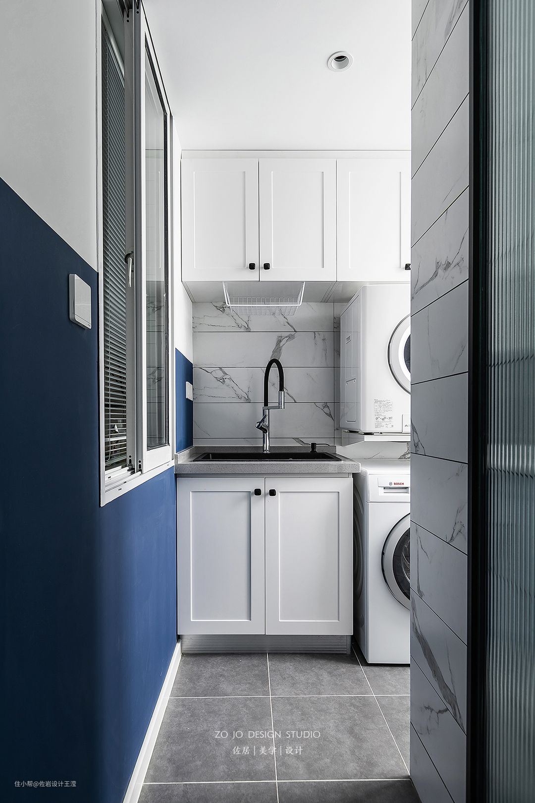 燃气干衣机。此次改造改变了生活阳台进门的方向,但是丝毫没有影响生活阳台作为一个洗衣区的作用。与橱柜一同定制的洗衣机柜,最大程度的扩大了收纳空间,所有生活用品的囤货都可以放在这里,洗衣机搭配烘干机,让阳台回归阳台的价值,不需要晾晒一些花花绿绿的衣服。 因为离厨房很近,烘干机并没有选择传统的电动,而是选择了燃气烘干机,品牌为港华紫荆,洗完直接丢在烘干机里,使用起来十分方便,也十分节能,客户用后非常推荐。