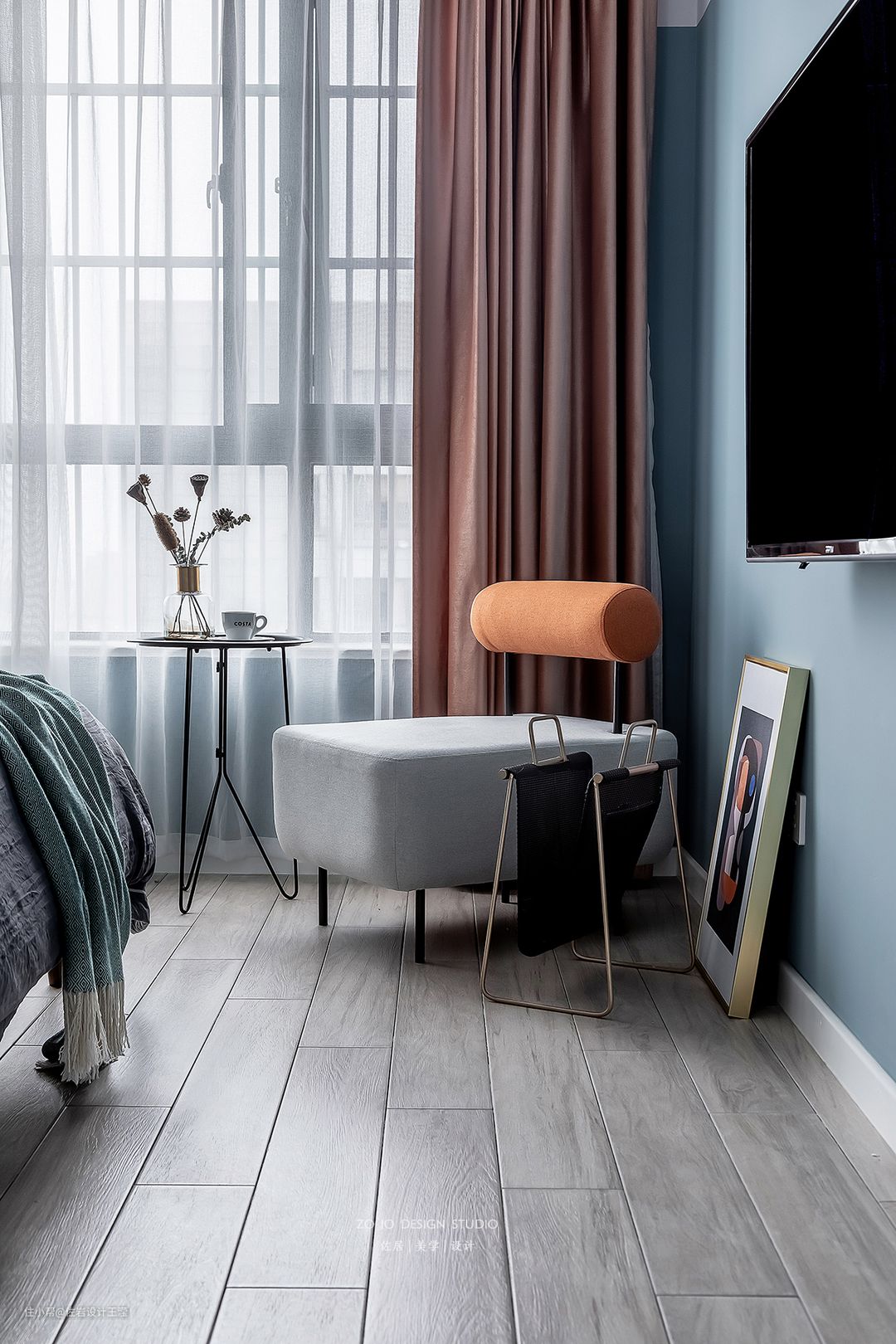 靠窗的位置摆放了一个单人椅以及一个小边几,单人沙发当时也是找了好久,在软配的时候知道要的色系,终于找到了更适合的,现场看耶非常的好看,阳光好的时候,家里的人都喜欢在这里坐坐。
