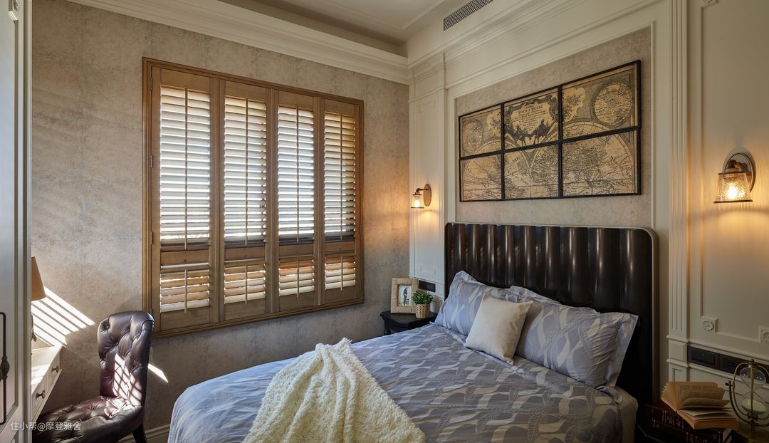 两间男孩房则各自凸显不同的个性,一间透过墙上的复古世界地图,散发浓厚的知性气质;另一间男孩房则保持文青质感,采取轻工业风为空间主调,营造别有滋味的寝卧气氛。