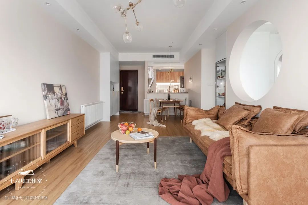 客厅、餐厅、厨房都在一个开放式的空间里,动线流畅更方便,让家显得温馨又惬意。