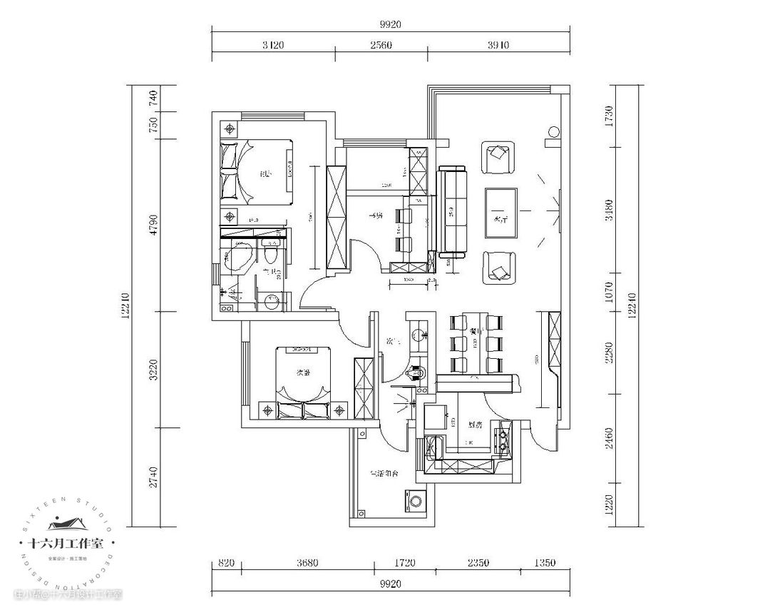 ②主卧卫生间墙面向卧室内推,扩大了使用面积。