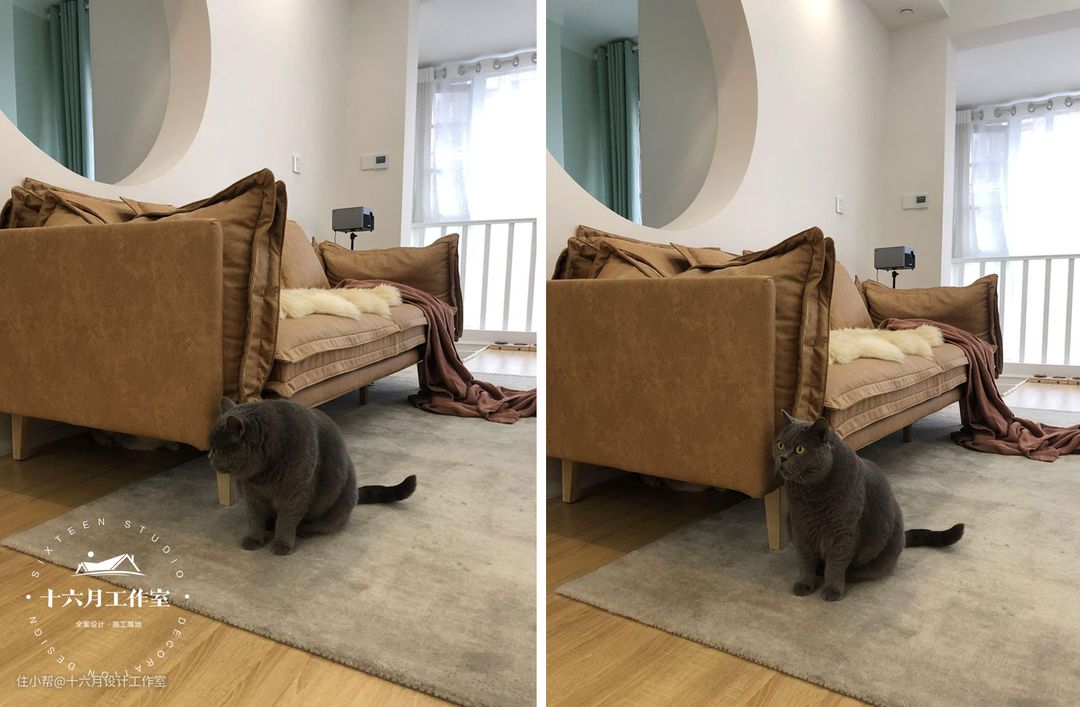两只猫:两只小猫常年在家,存在掉毛问题,喜欢去高的地方玩耍(希望能在墙上修几个踏板,他们可以蹦上去玩),喜欢看窗外。因为健康原因需要经常晒太阳(长期呆在阳台或者可以晒太阳的地方);期望他们有独立玩耍的地方,不过多干预我们的生活(不能进入卧室、厨房、卫生间、生活阳台)。